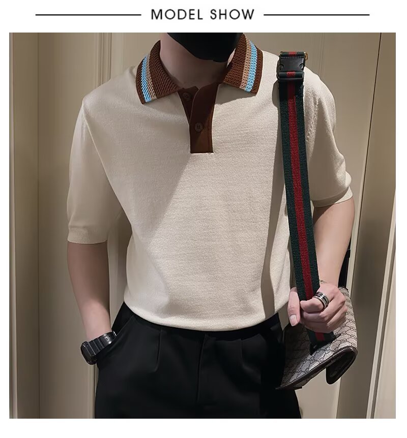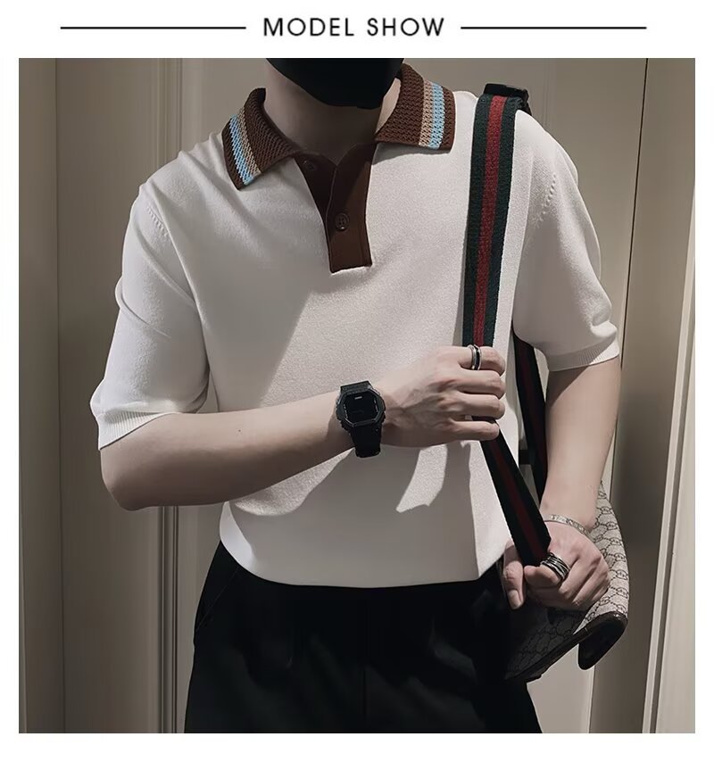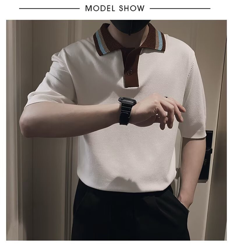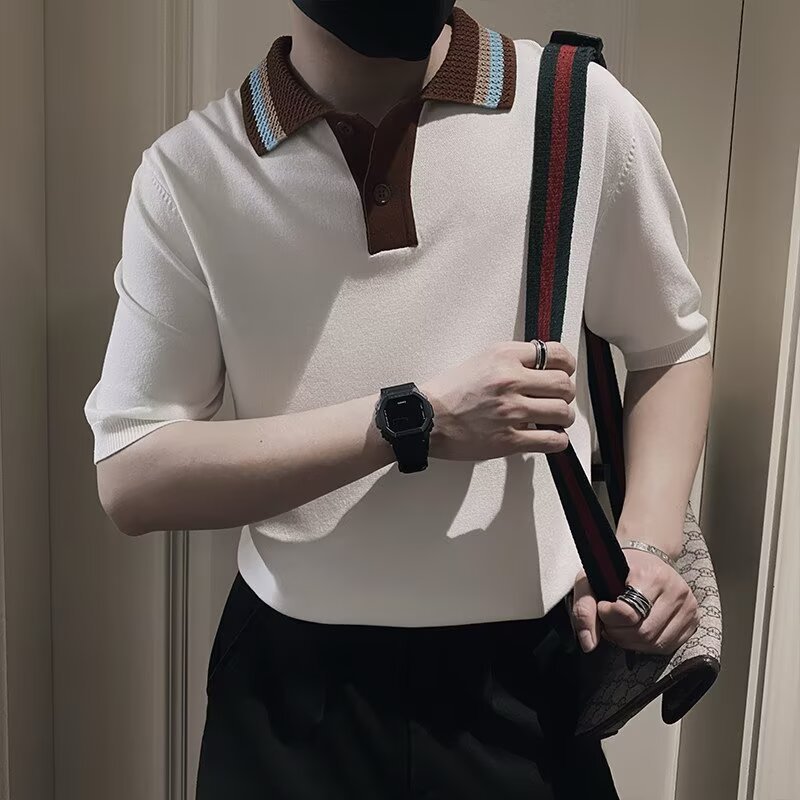 니치 라펠 반팔 남성 트렌디 스웨터 여름 배색 한국 스타일 슬림 폴로 셔츠 대외 무역 지원 드롭 배송