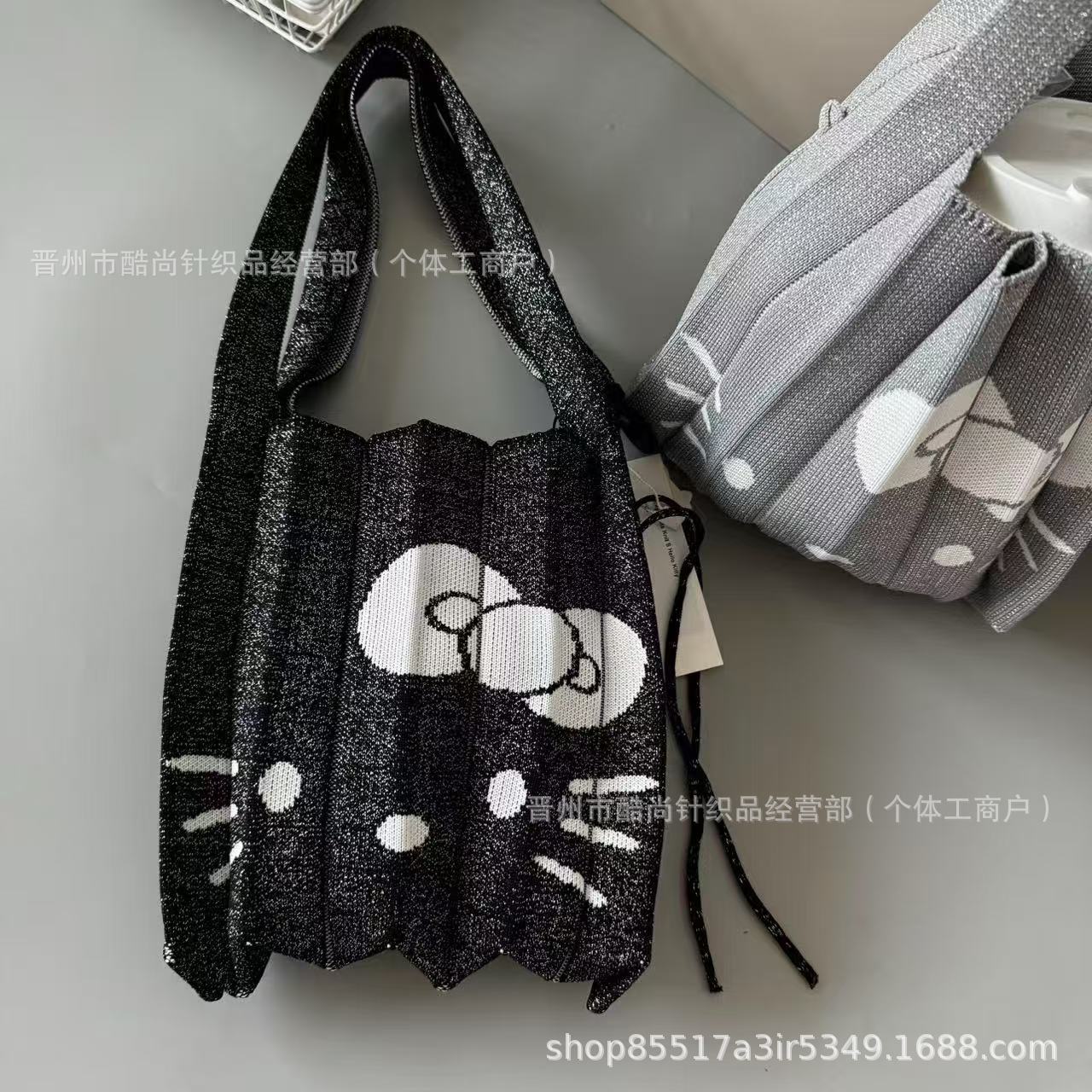 한국 JOSEPH&STACEY 산리오 헬로키티 공동 브랜드 주름 귀여운 니트 핸드백 도매스토어 가기