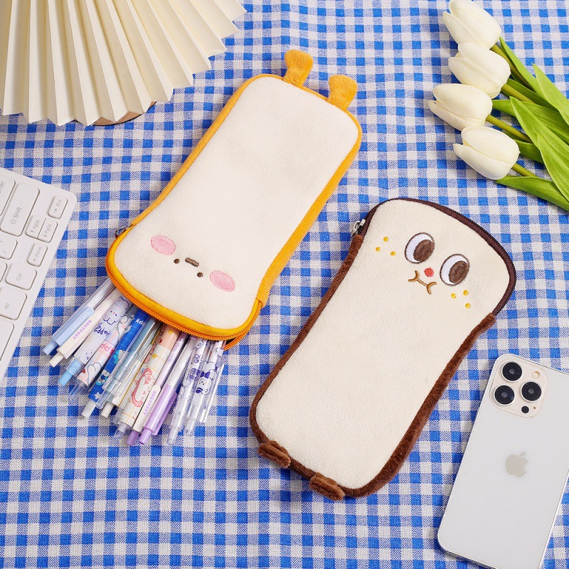 토스트 필통 동전지갑 소녀 감성 인스 스타일 수납 플러시백 귀엽고 부드러운 빵 대용량 창의적인 인스 스타일