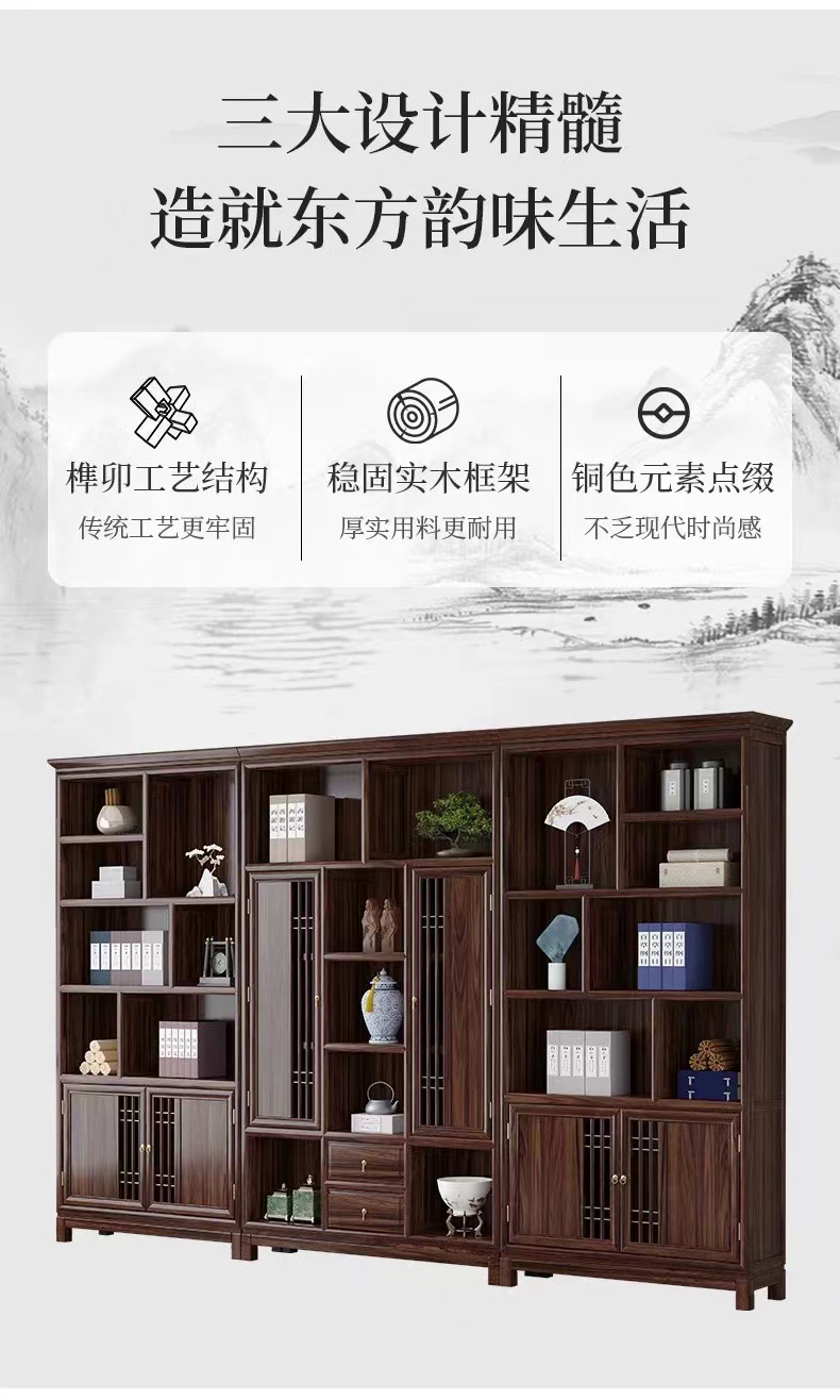 새로운 중국 스타일 책장 황금 로즈우드 책장 홈 오피스 연구 보관함 현대 간단한 보관 캐비닛 조합