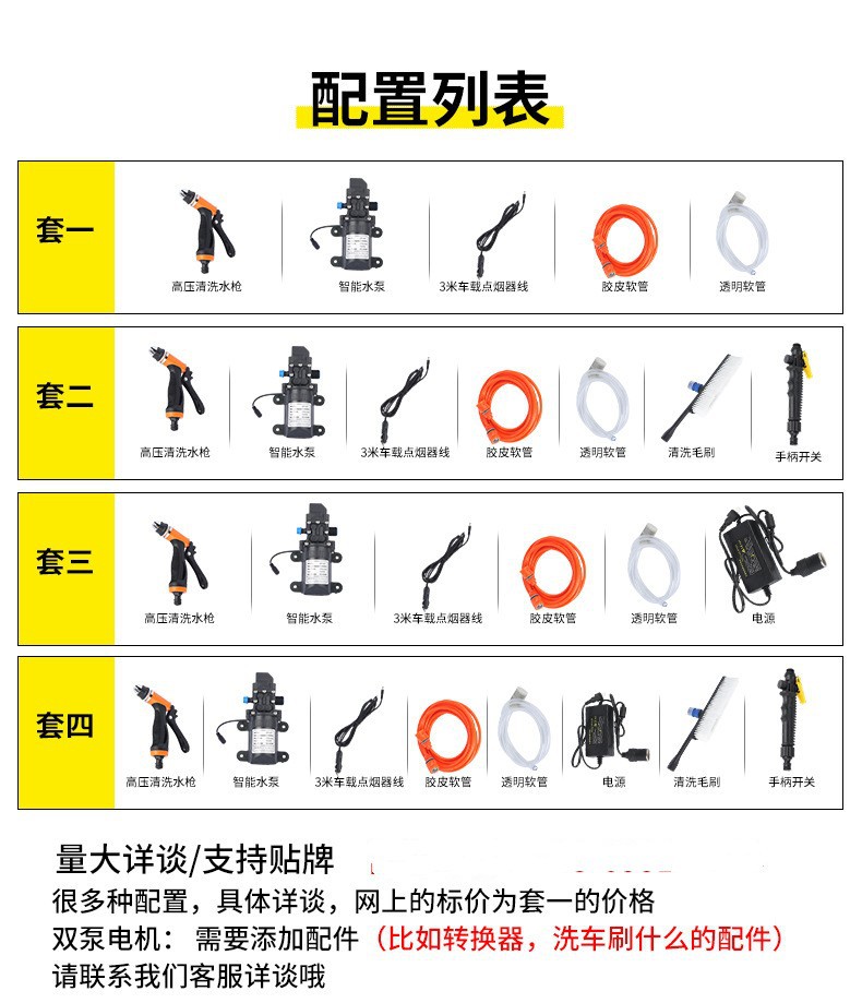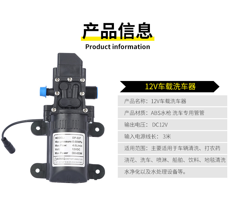 12V 고압 세차 물총 가정용 세차 기계 전기 휴대용 자동차 세차 펌프 세차 기계 세척 국경 간스토어 가기