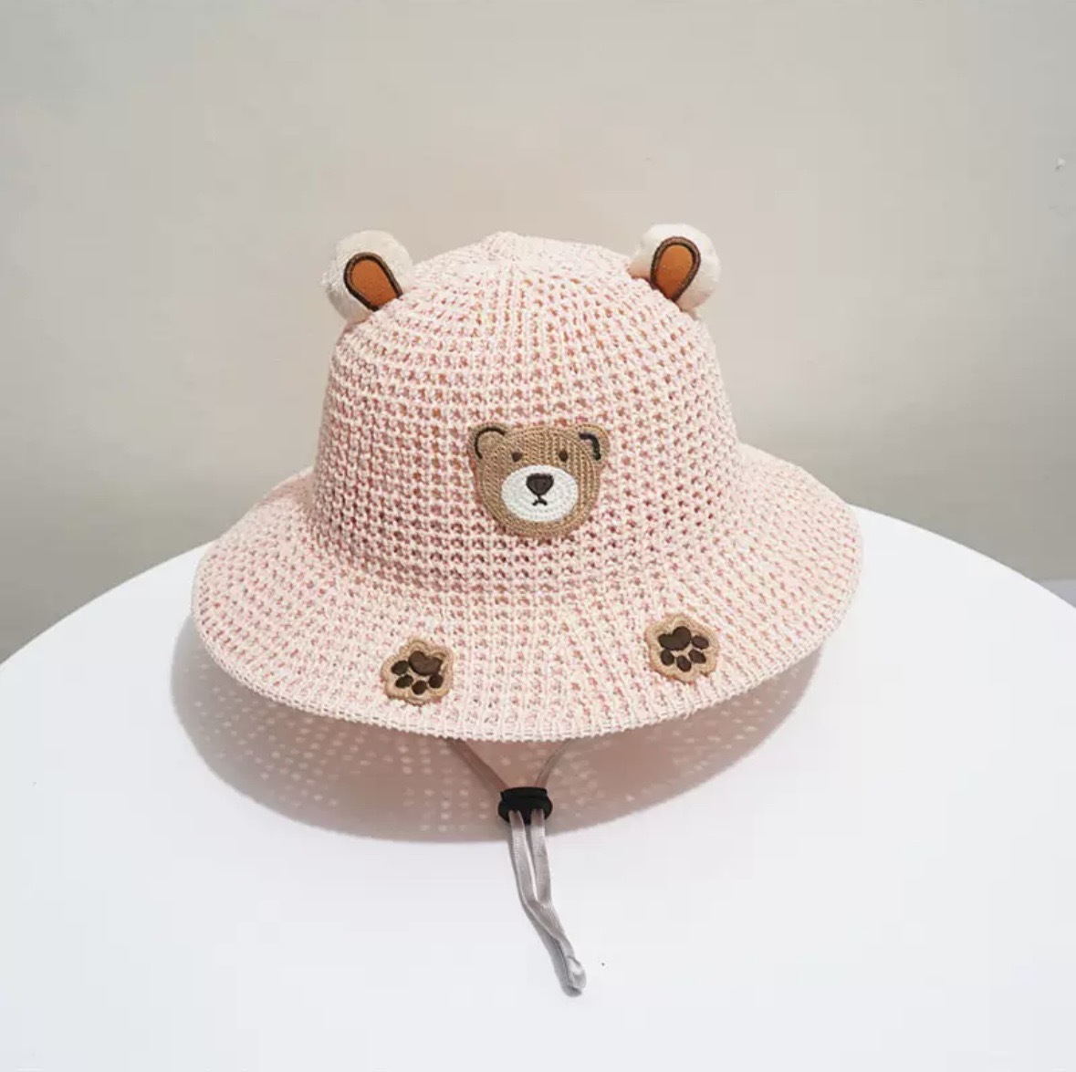 • 어린이용 레이스 밀짚모자 - 핑크색