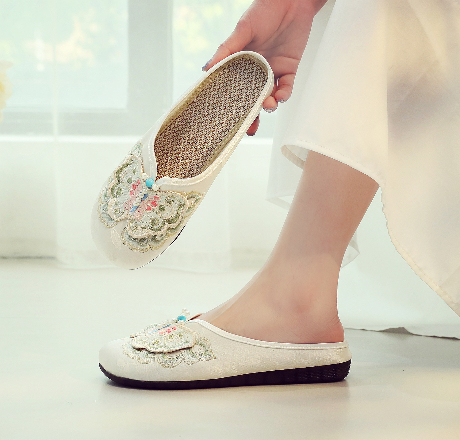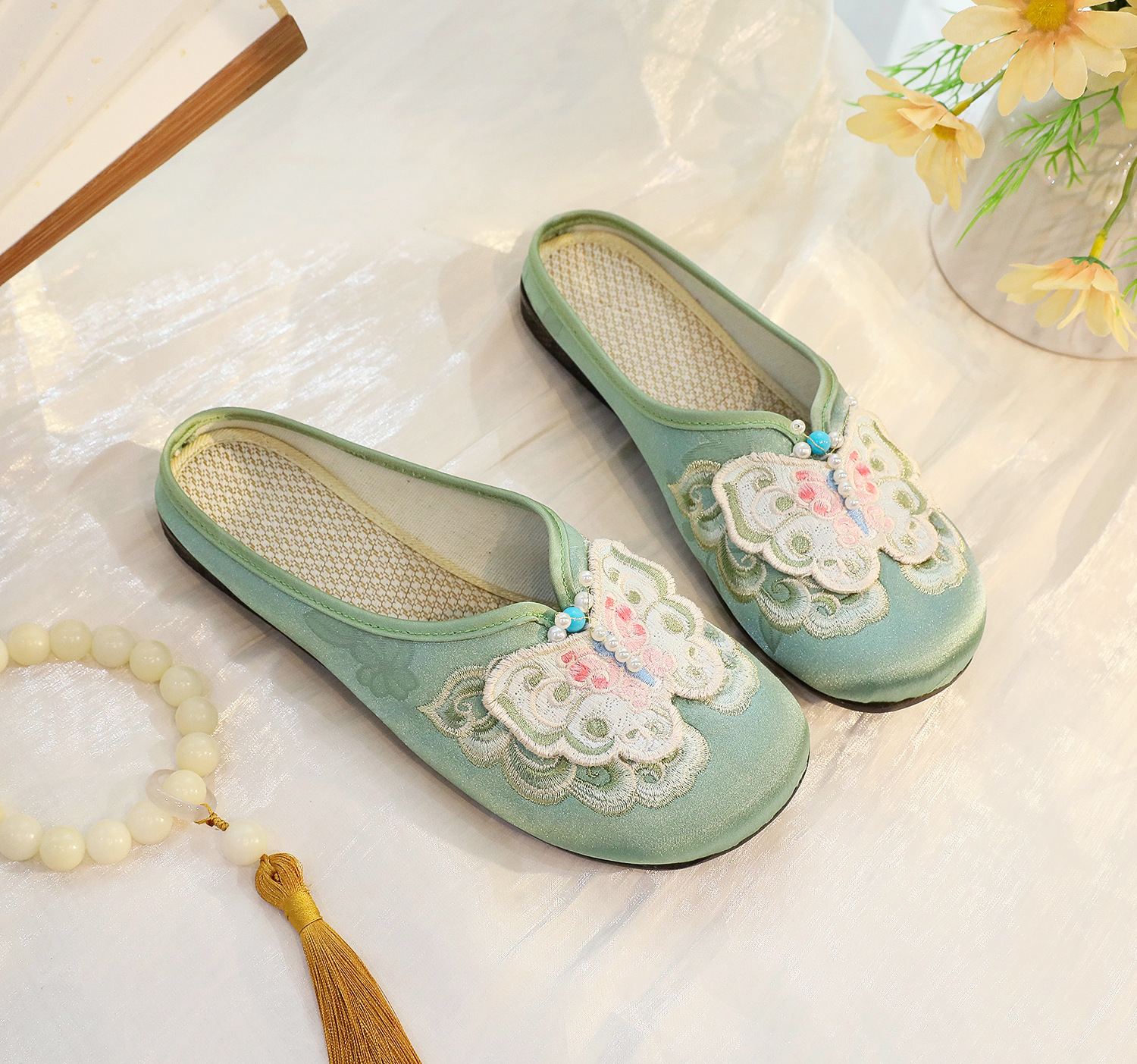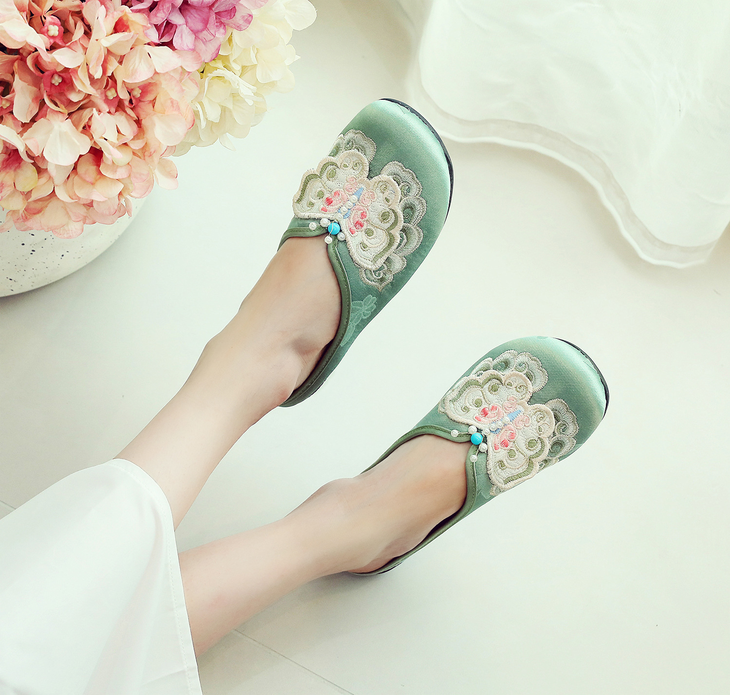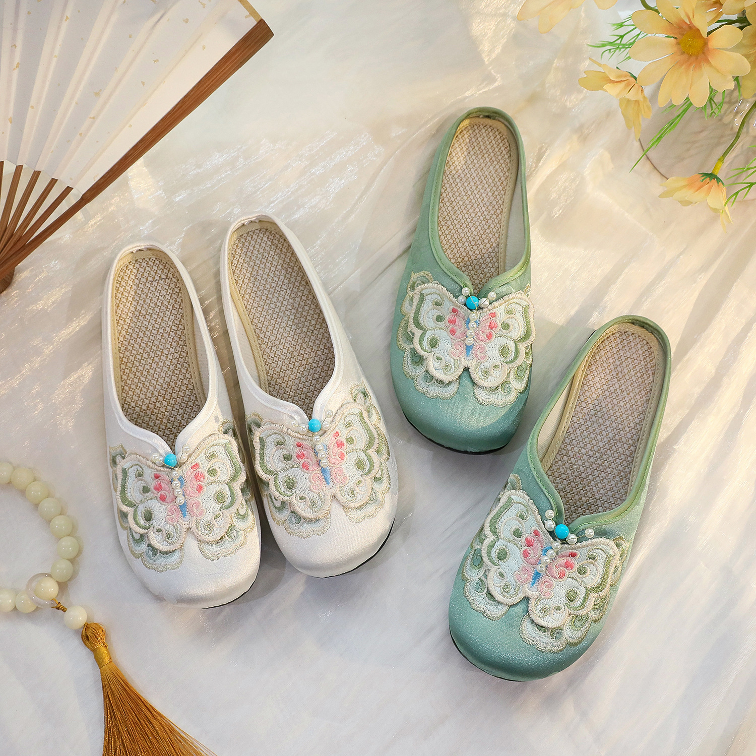 새로운 중국 스타일 플랫 슈즈, 부드러운 밑창 엄마 신발, 자수 천 신발, 자수 여성 신발, 차 의류 및 Hanfu와 매치 가능