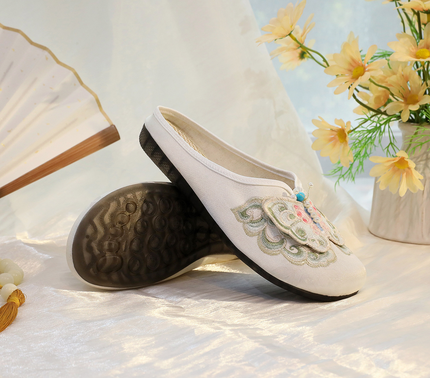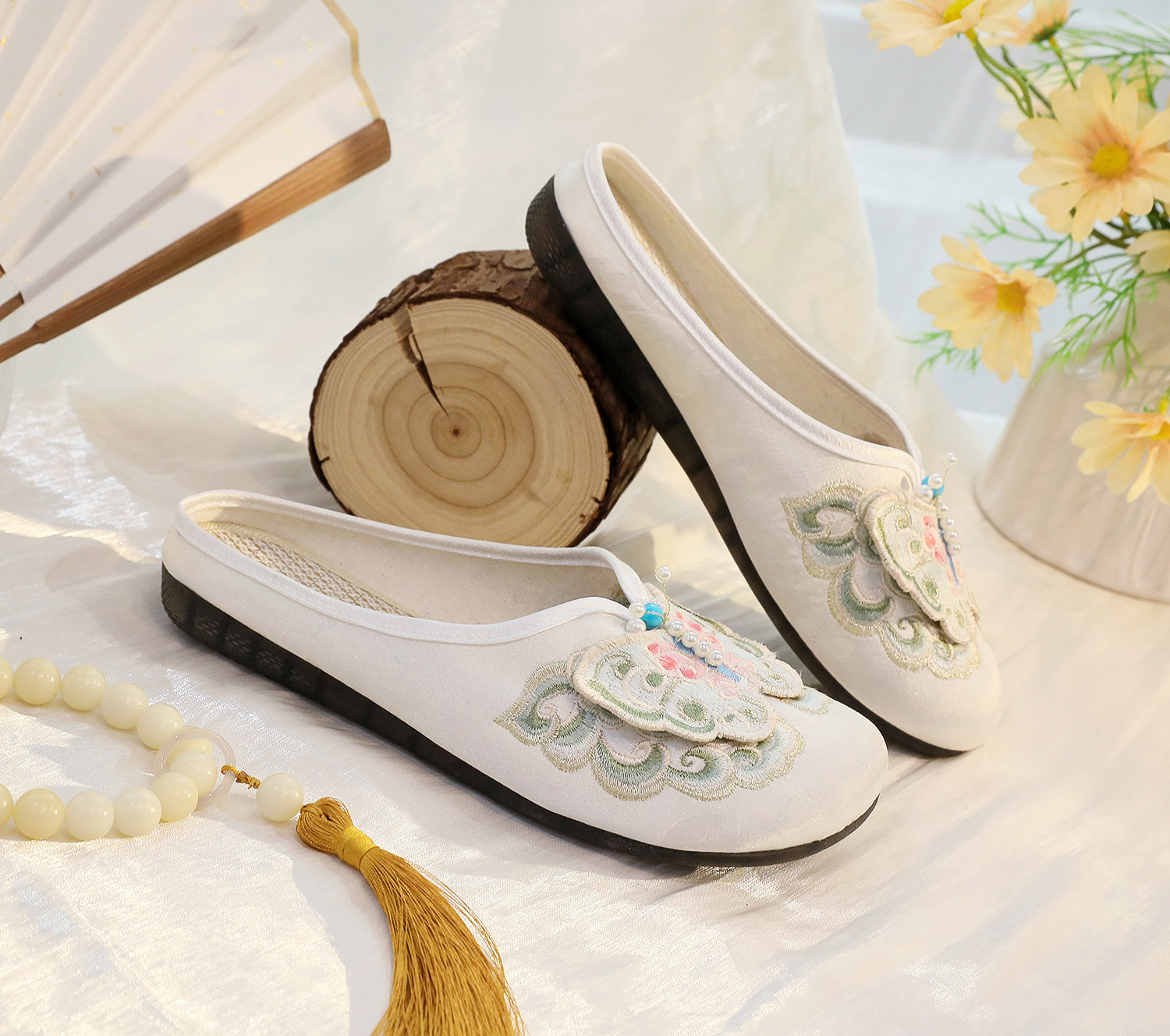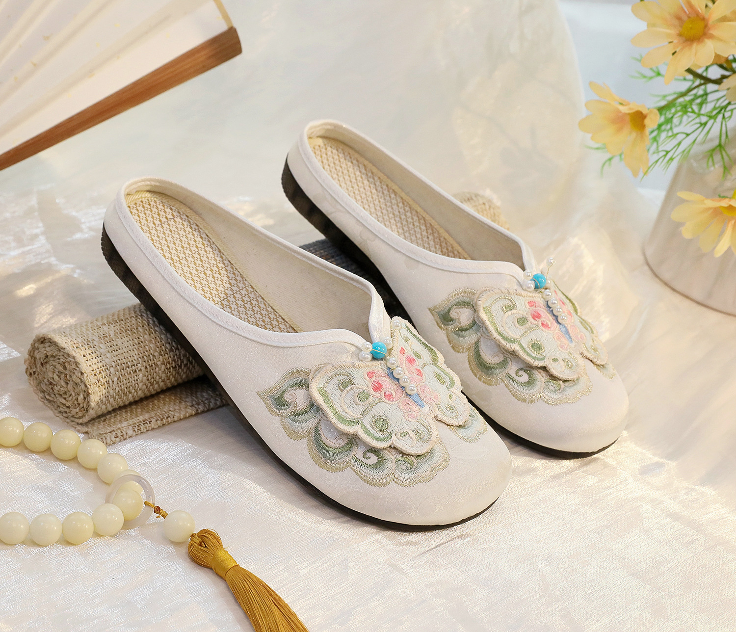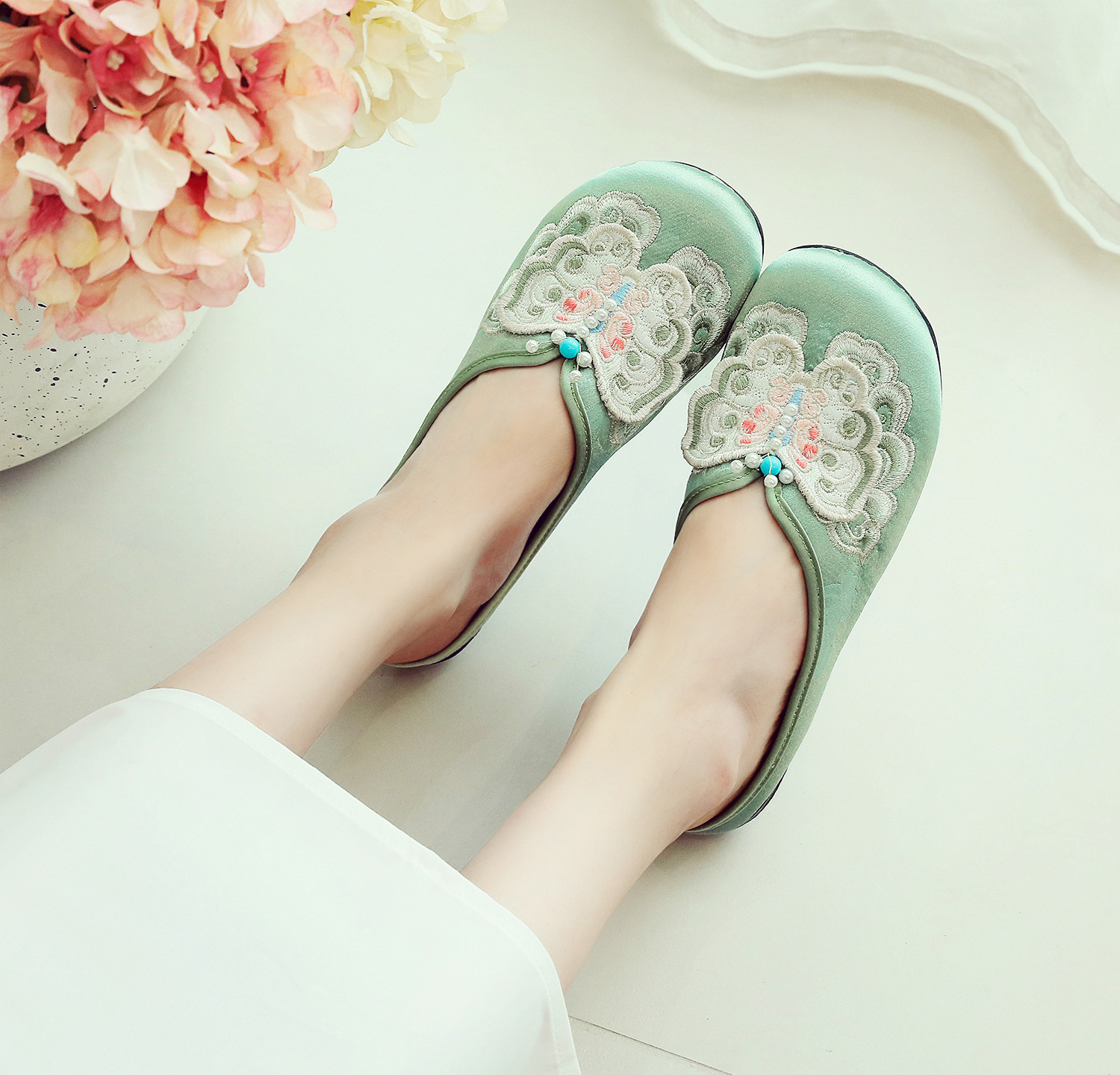 새로운 중국 스타일 플랫 슈즈, 부드러운 밑창 엄마 신발, 자수 천 신발, 자수 여성 신발, 차 의류 및 Hanfu와 매치 가능