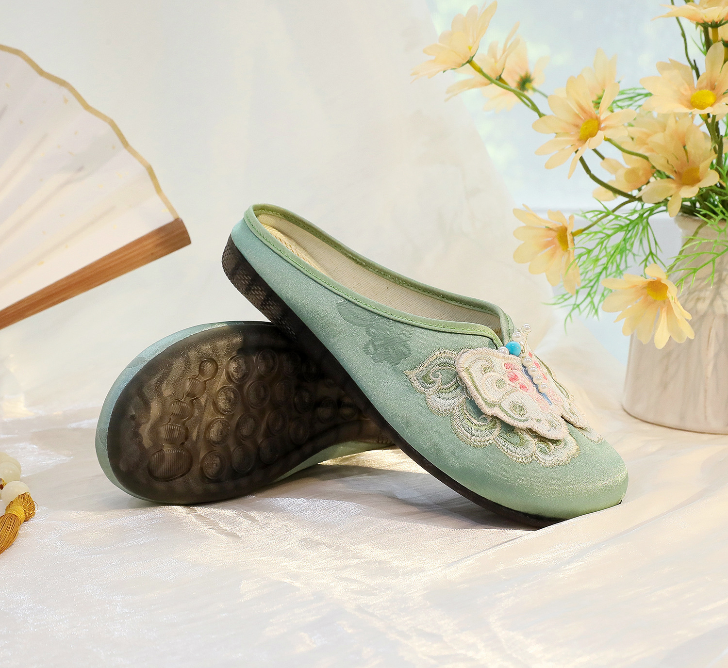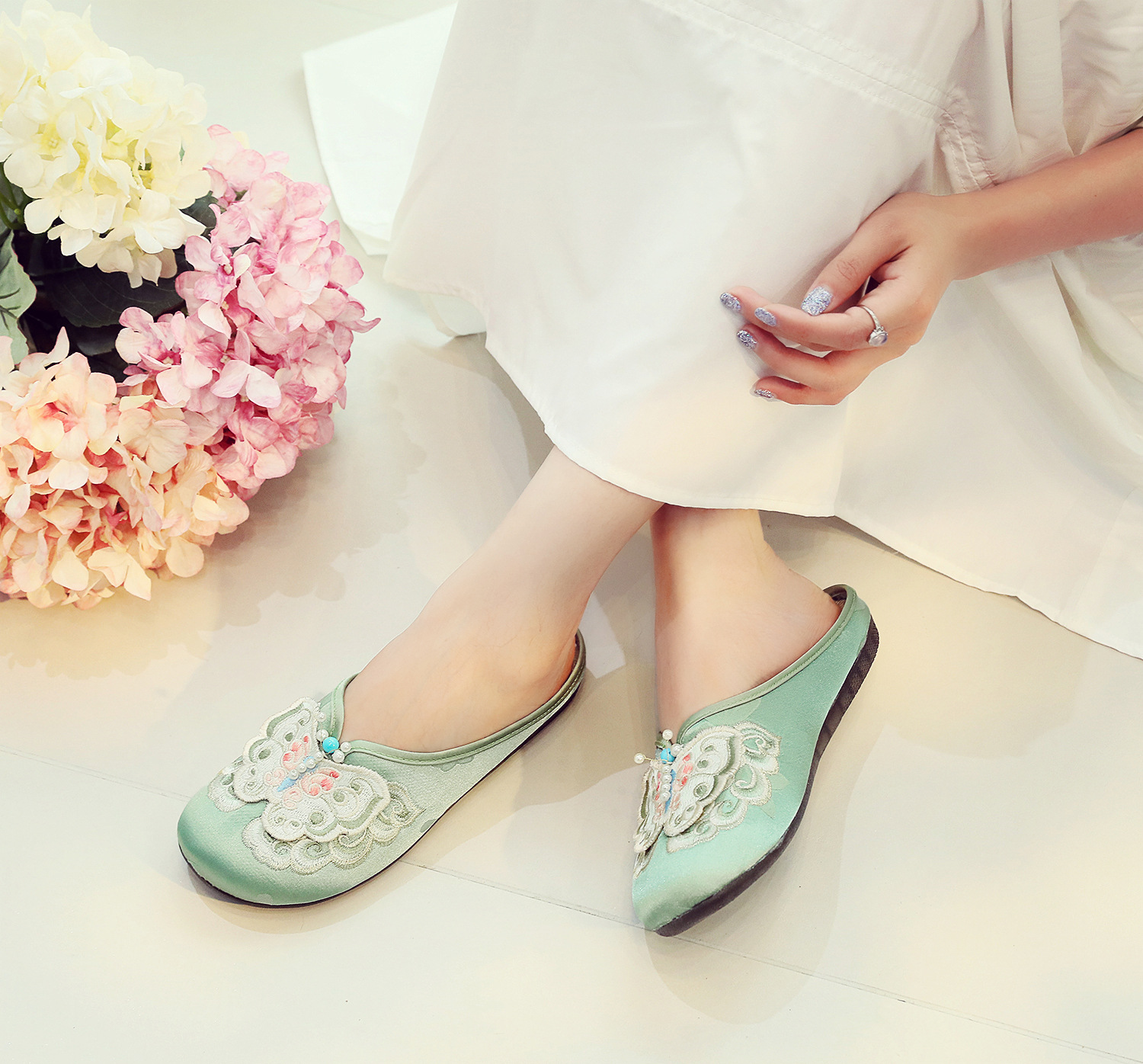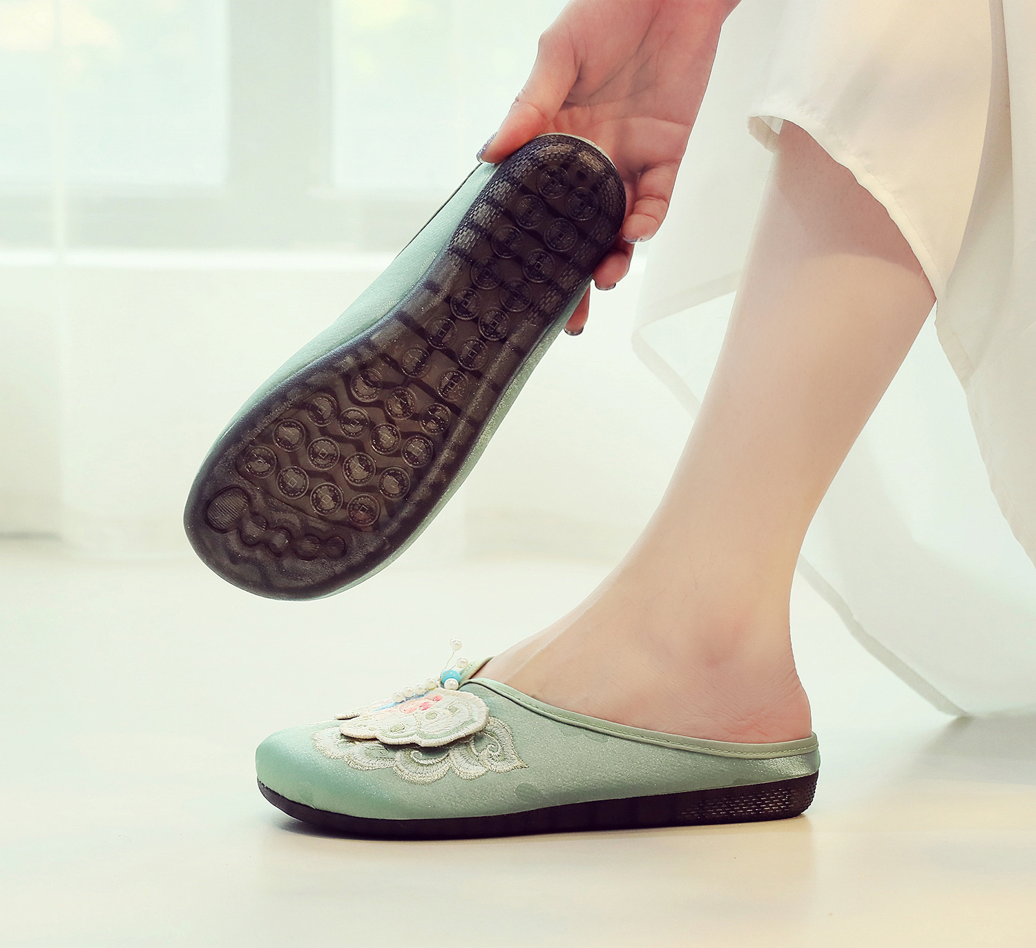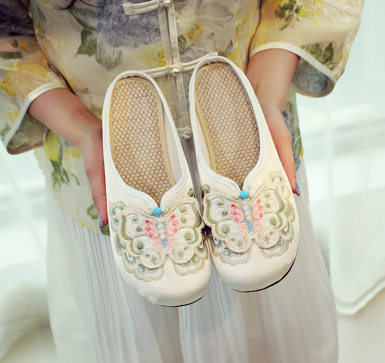 새로운 중국 스타일 플랫 슈즈, 부드러운 밑창 엄마 신발, 자수 천 신발, 자수 여성 신발, 차 의류 및 Hanfu와 매치 가능