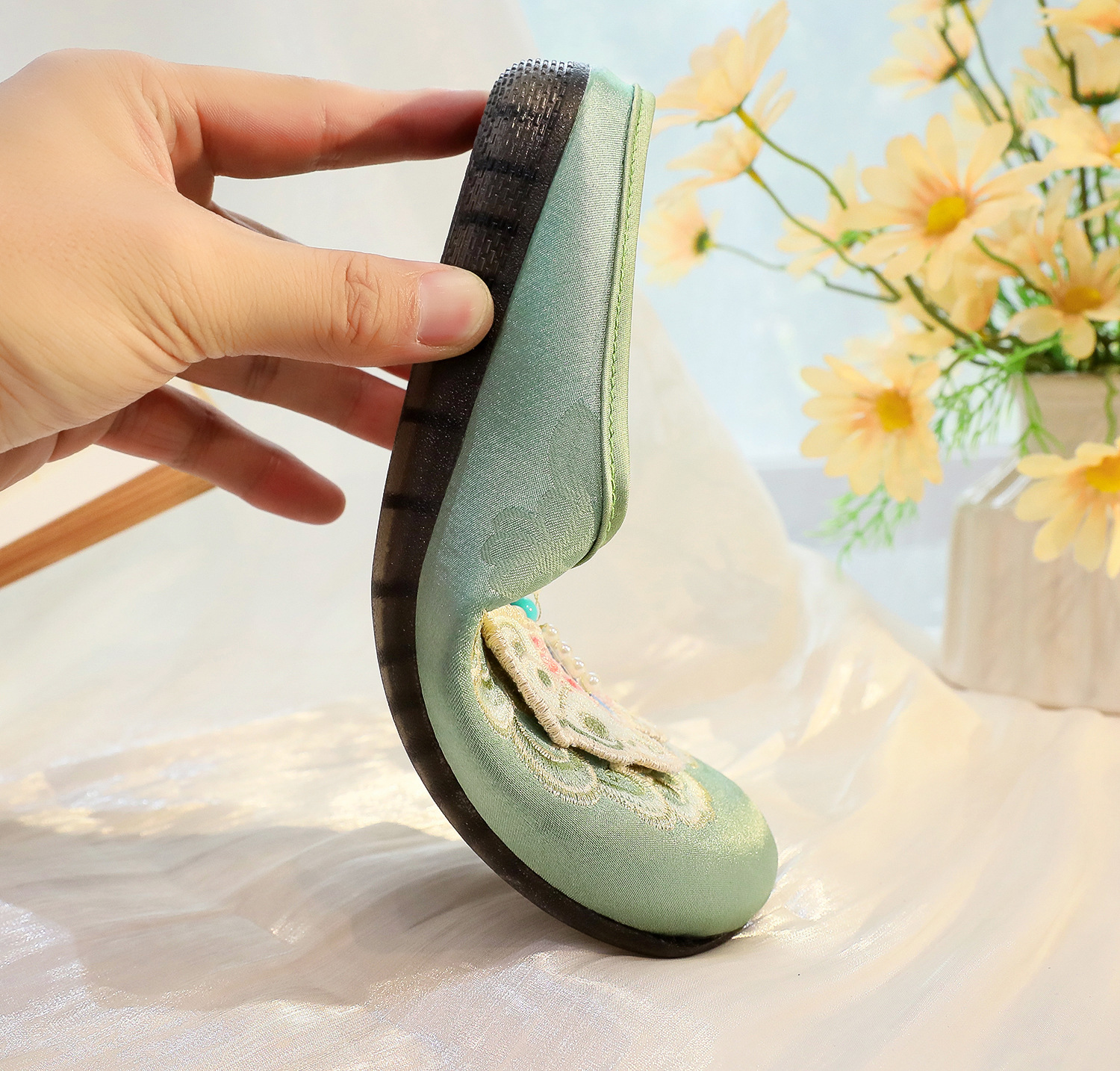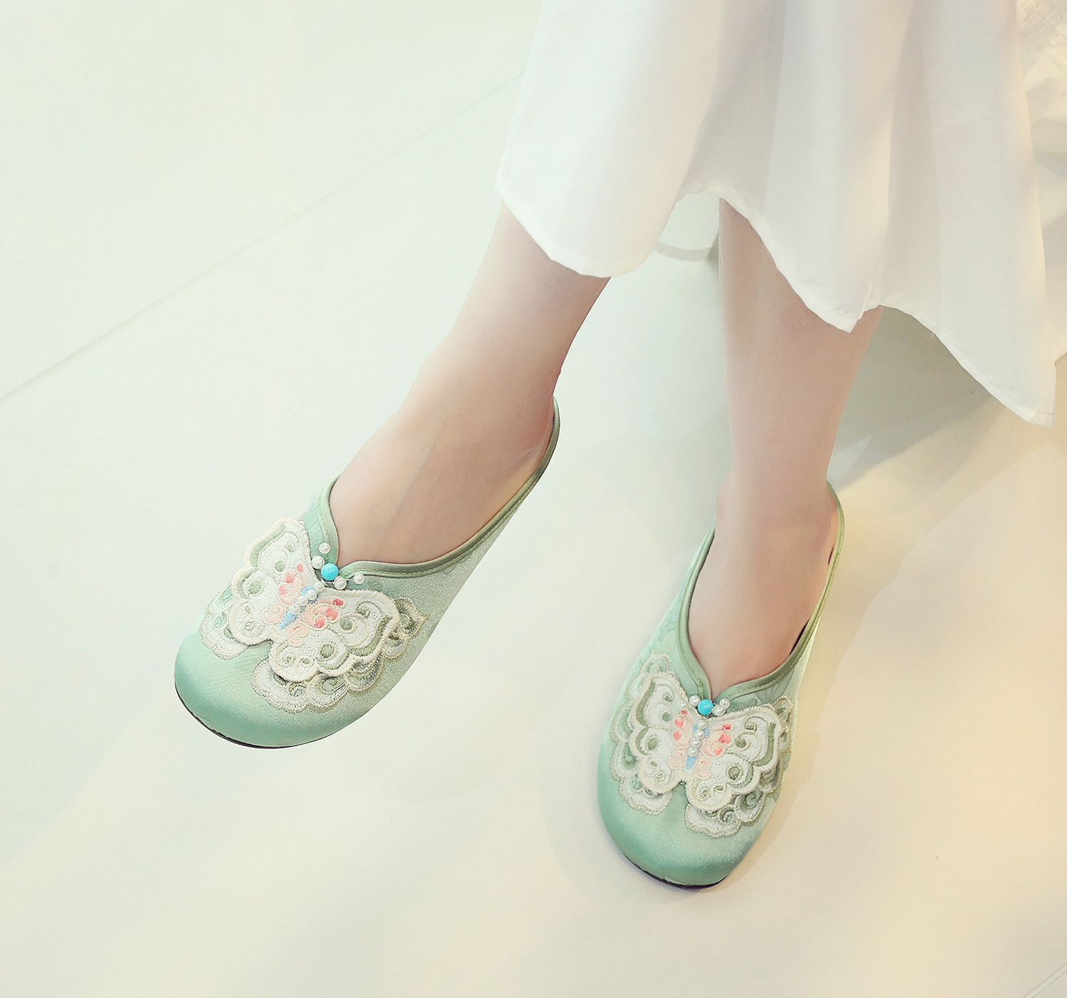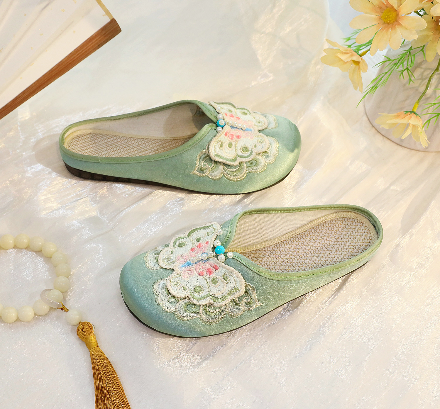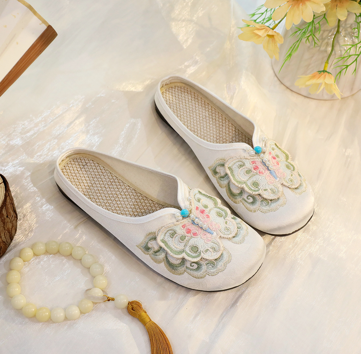 새로운 중국 스타일 플랫 슈즈, 부드러운 밑창 엄마 신발, 자수 천 신발, 자수 여성 신발, 차 의류 및 Hanfu와 매치 가능스토어 가기