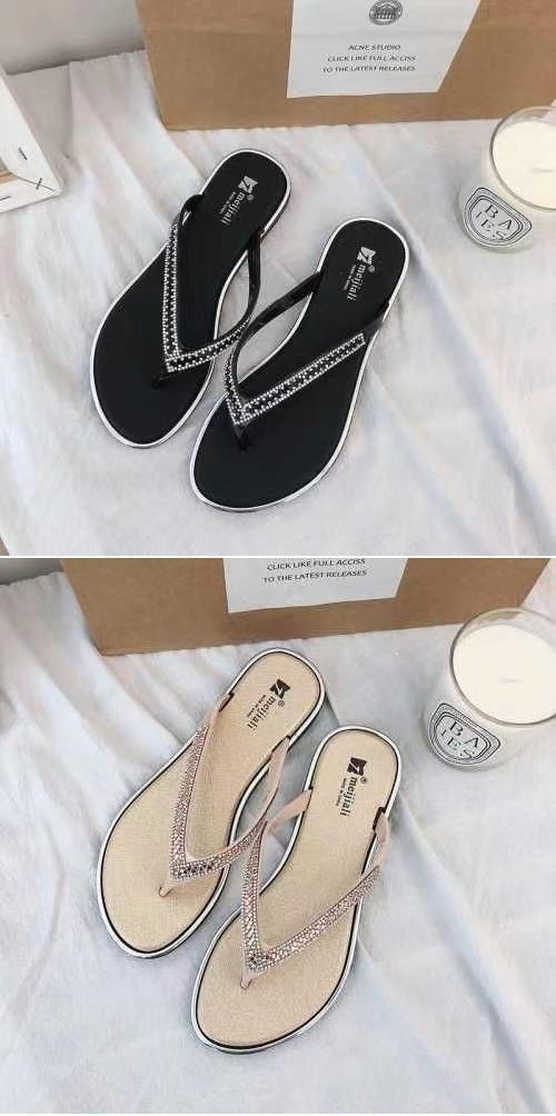 여성용 패셔너블한 슬리퍼, 라인스톤 플랫솔, 인터넷 연예인 비치 여름 슬리퍼, 여성용 캐주얼 스위트 슬리퍼스토어 가기