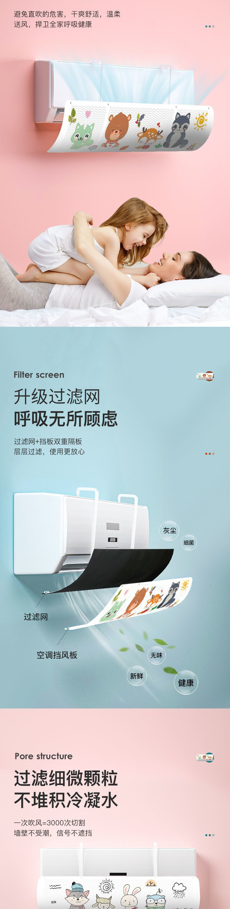 에어컨 윈드 디플렉터, 직풍 방지 윈드 디플렉터, 에어컨 공기 배출구, 벽걸이형 범용 설치 불필요