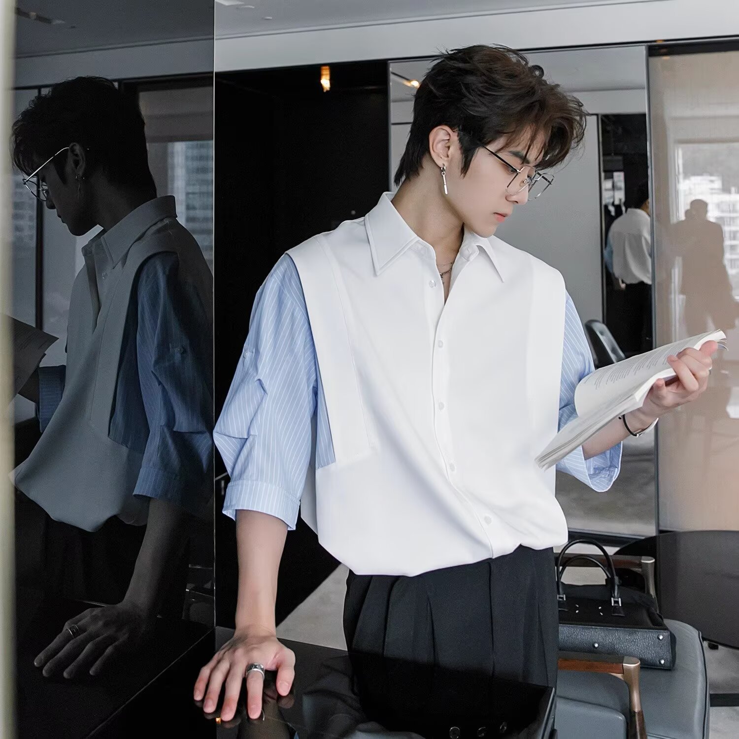 폴로 칼라 통근 다용도 가짜 투피스 스플라이스 셔츠 여성용 새로운 디자인 다용도 탑 2025스토어 가기