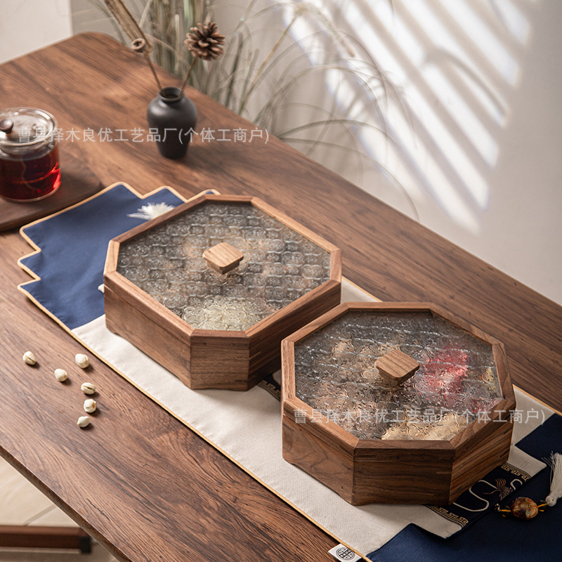 말린 과일 상자 스낵 커피 테이블 보관 상자 새로운 중국 스타일 단단한 나무 과일 접시 홈 거실 뚜껑이있는 견과류 접시 사탕스토어 가기