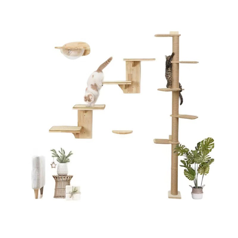 국경 간 나무 벽 고양이 클라이밍 프레임 단단한 나무 벽 고양이 서식지 애완 동물 계단 벽걸이 형 고양이 점프 플랫폼