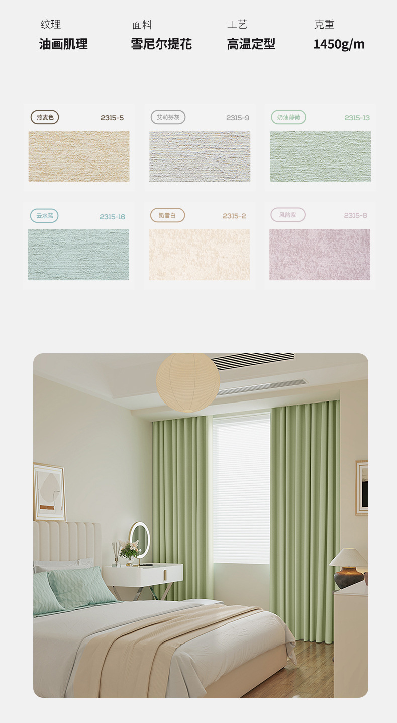Shaoxing Keqiao 항균 커튼 맞춤형 무료 트랙 거즈 커튼 샘플 완전 차광 셔닐 침실 커튼 샘플스토어 가기