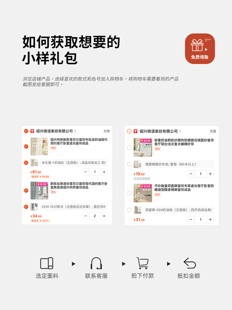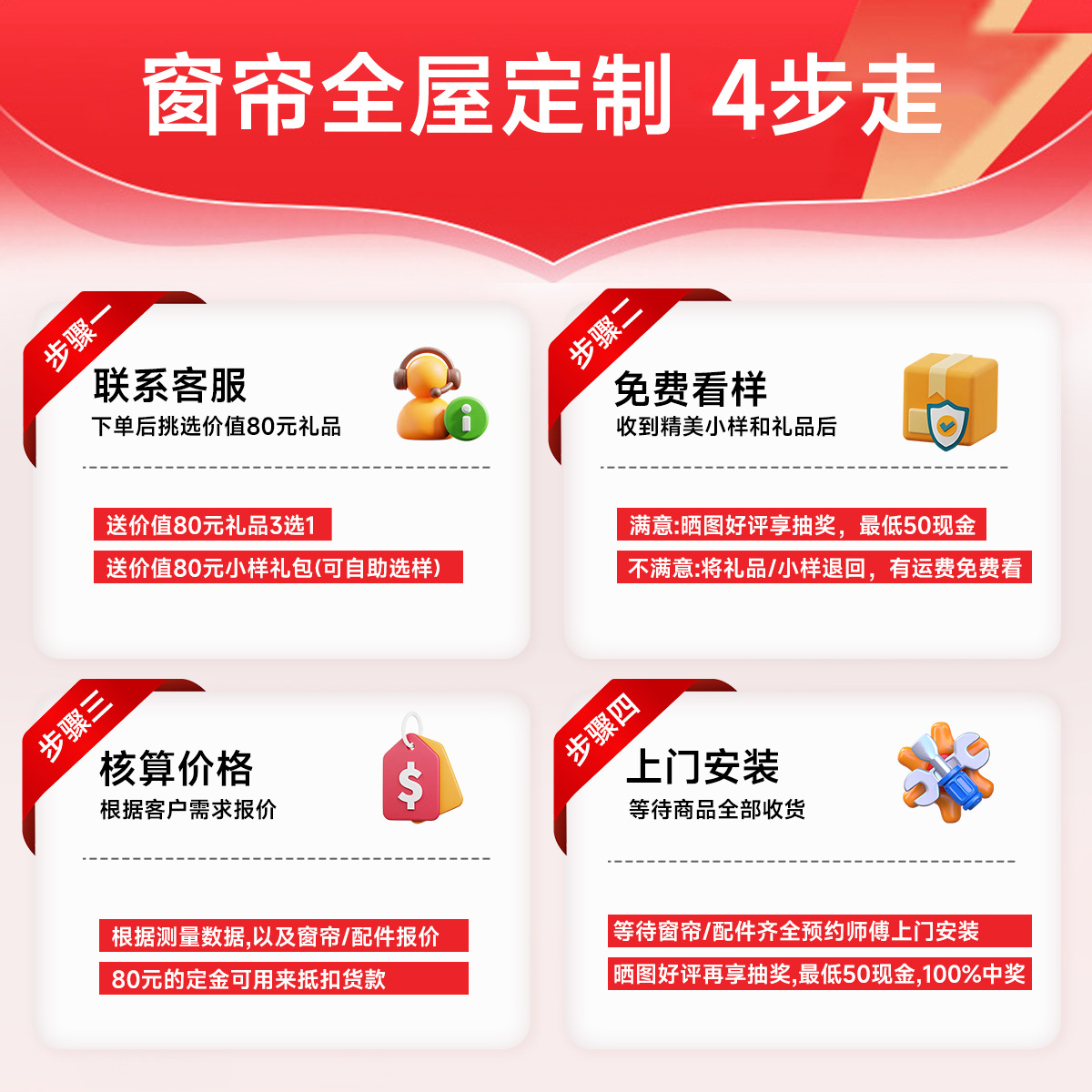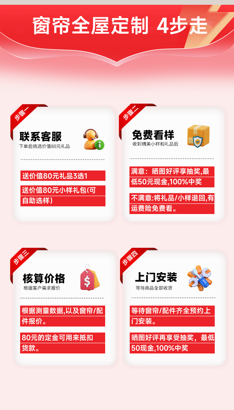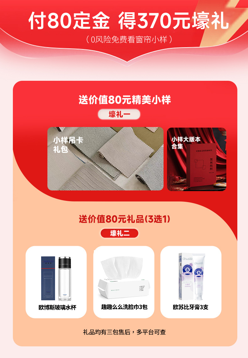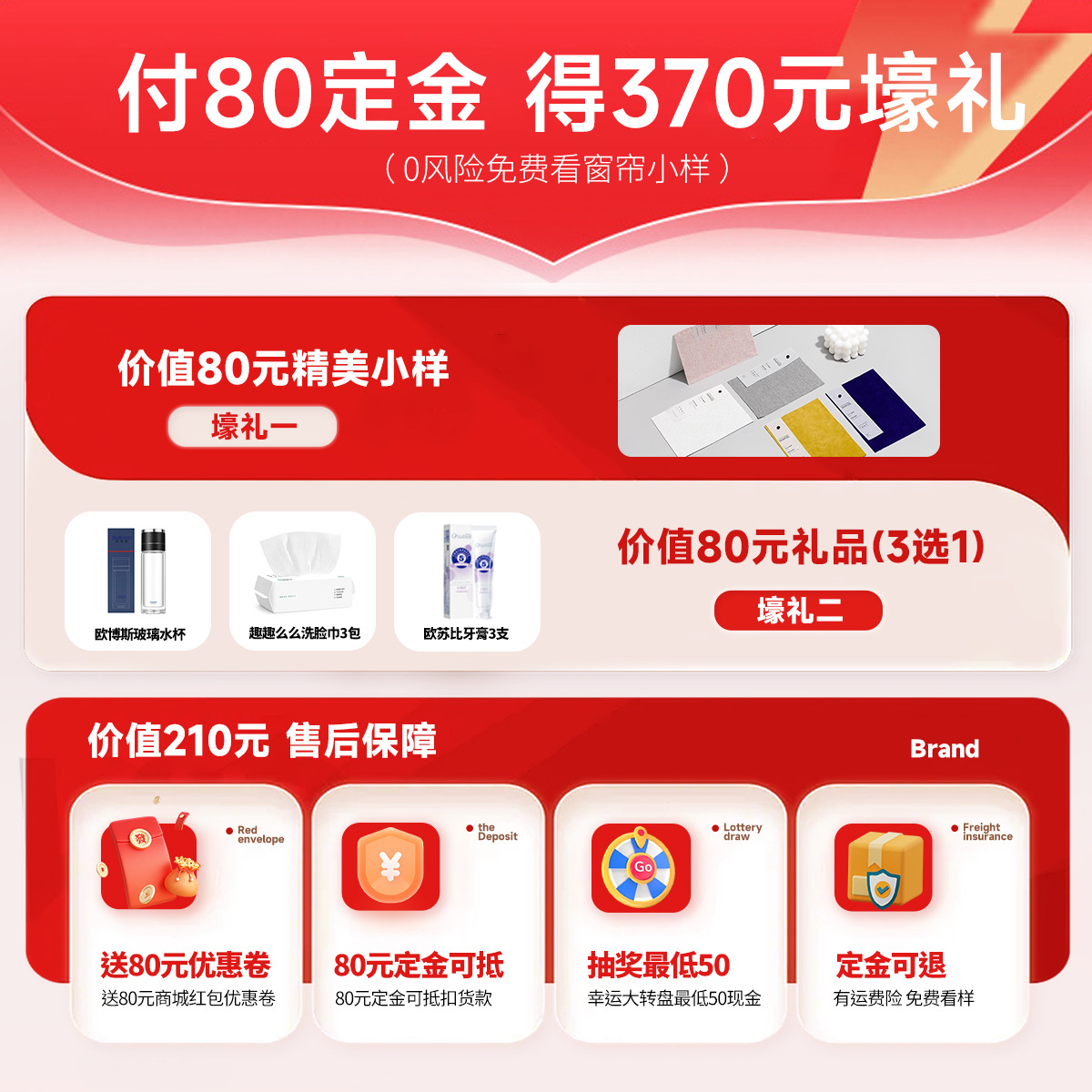 • [보증금 지불] 무료 샘플 + 370위안 상당의 사은품 + 방문 측정 및 설치 서비스