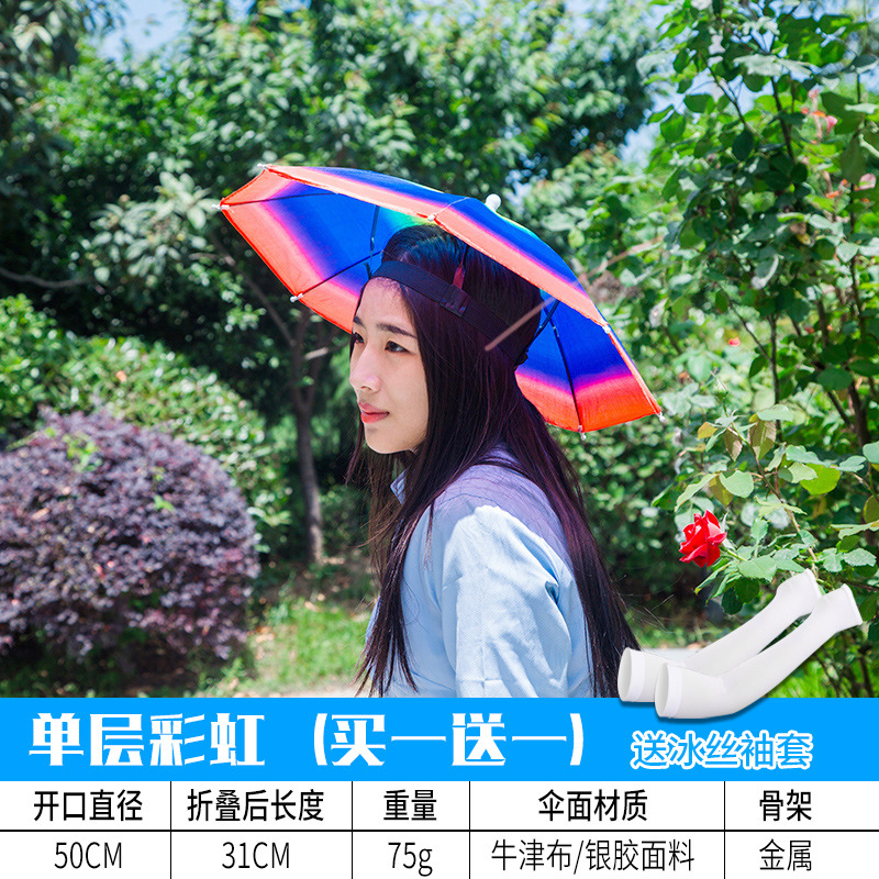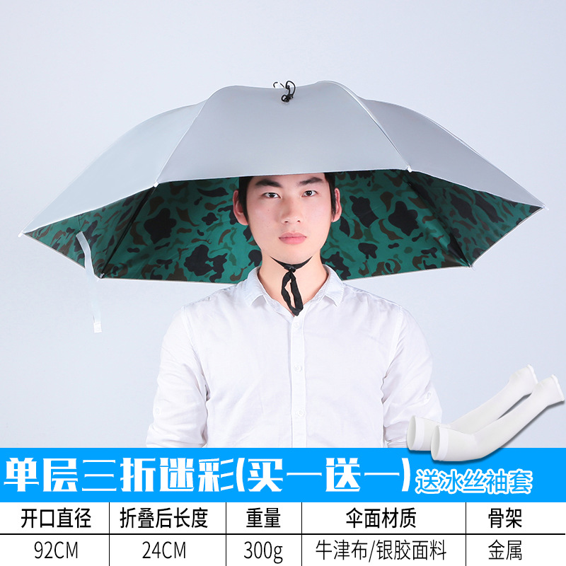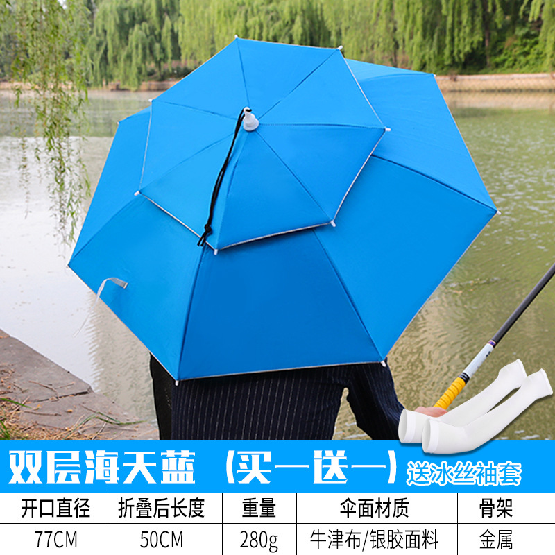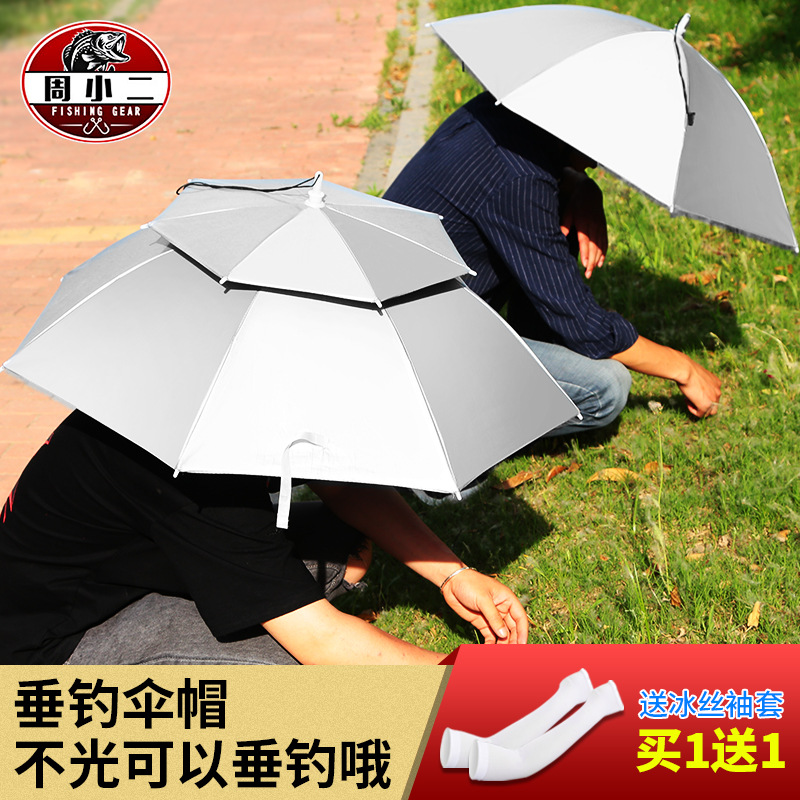 우산 모자, 머리 장착형 이중층 대형 파라솔, 방수 접이식 오버헤드 우산, 야외 낚시 및 차 따기 모자