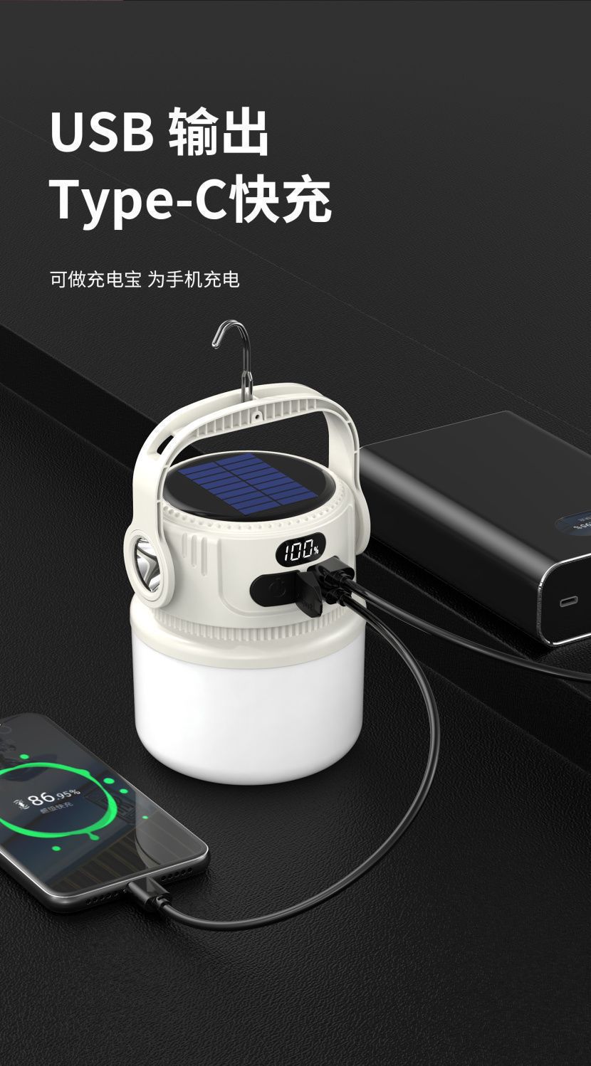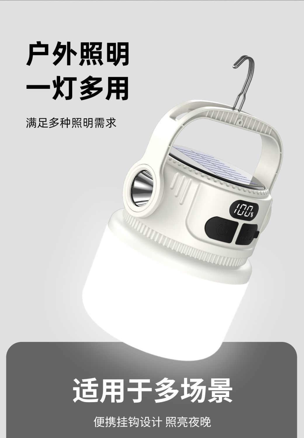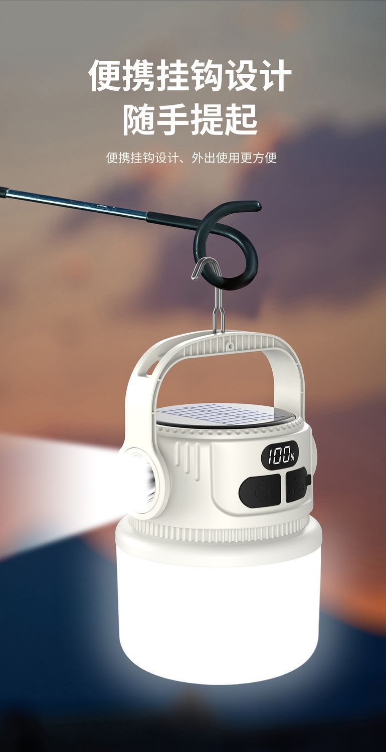 캠핑 랜턴 태양광 USB 충전 캠핑 랜턴 듀얼 광원 디지털 디스플레이 LED 램프 태양광 램프 휴대용스토어 가기