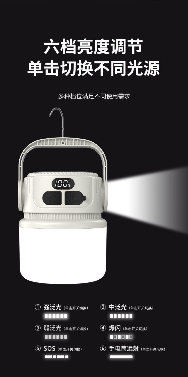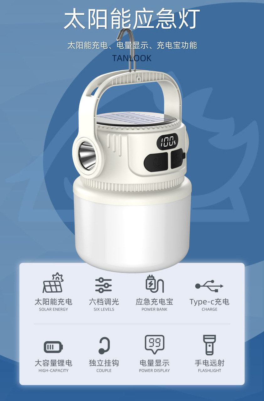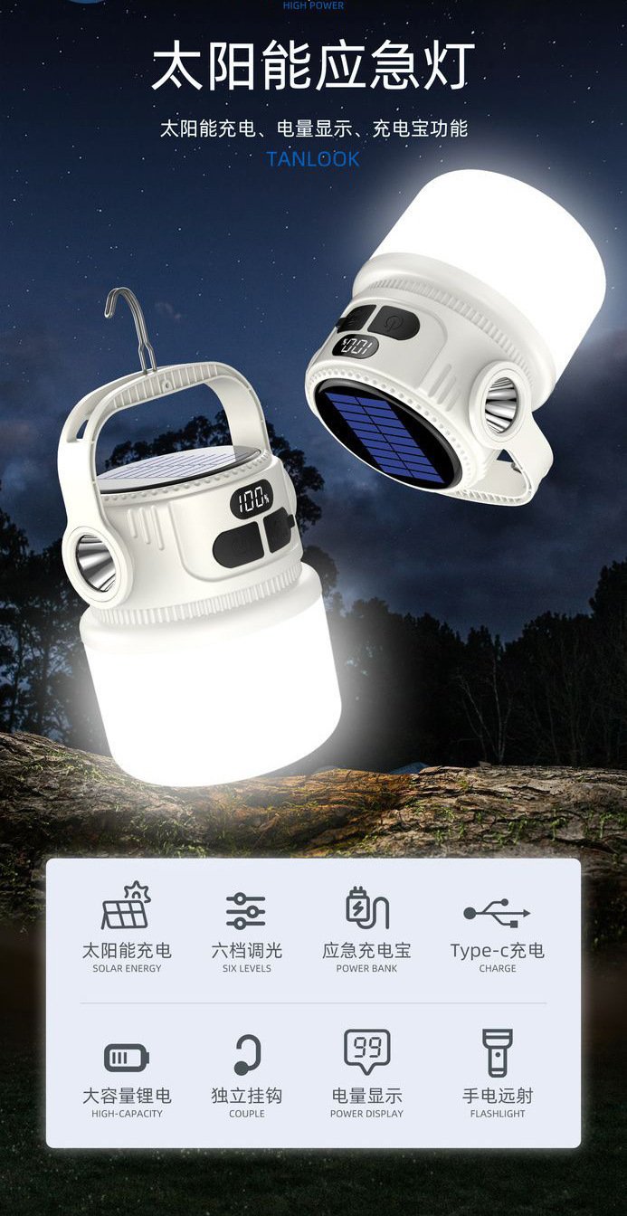 캠핑 랜턴 태양광 USB 충전 캠핑 랜턴 듀얼 광원 디지털 디스플레이 LED 램프 태양광 램프 휴대용스토어 가기
