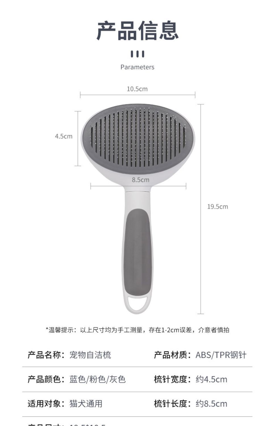 • [미니멀리스트 그레이] 업그레이드된 셀프 클리닝 빗