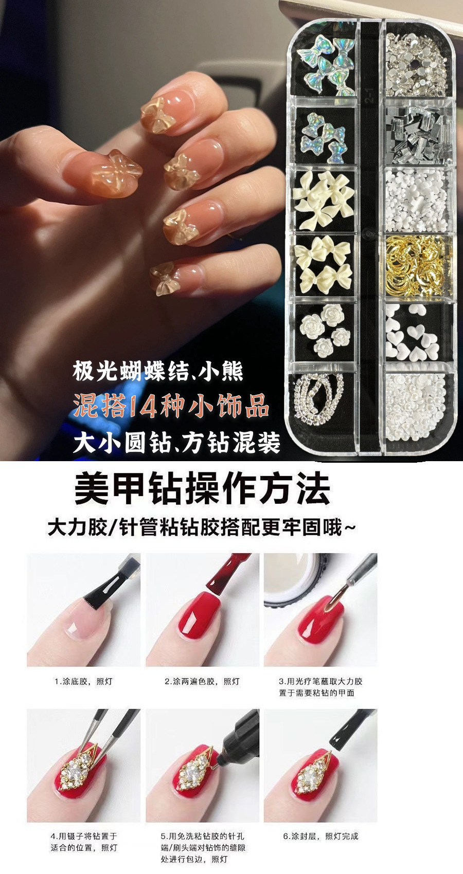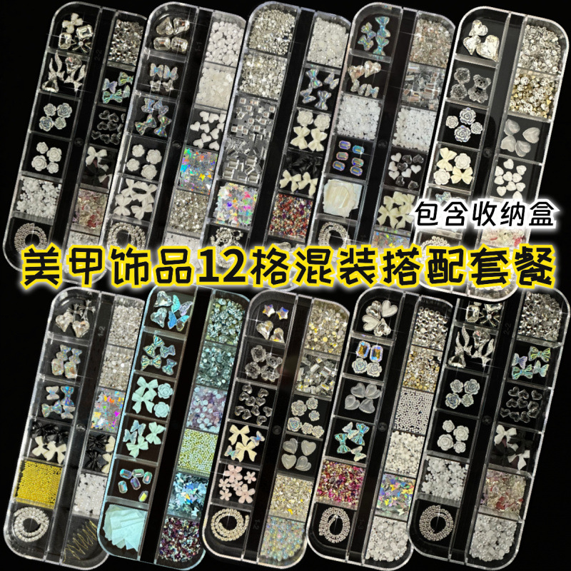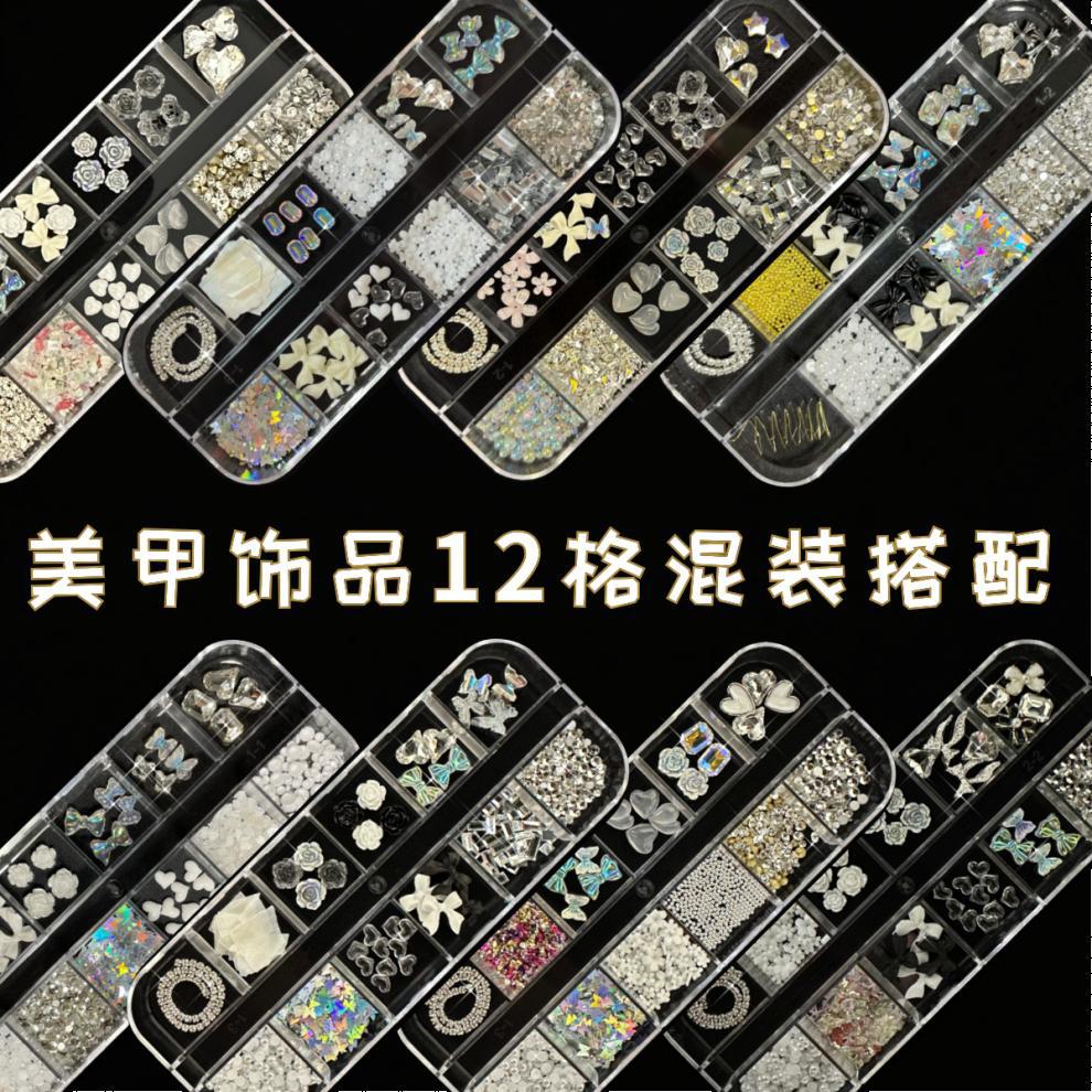 네일 아트 액세서리 새로운 스타일 12 그리드 혼합 플랫 다이아몬드 오로라 리벳 꽃 핫 스타일 학생 매니큐어 장식 다이아몬드스토어 가기