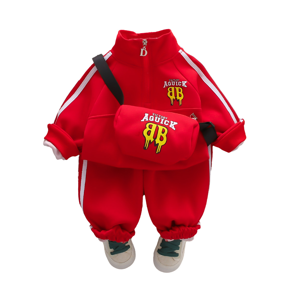 2025 새로운 소년 알파벳 로고 가방 재킷과 바지 투피스 세트 공장 도매