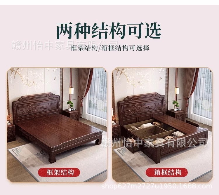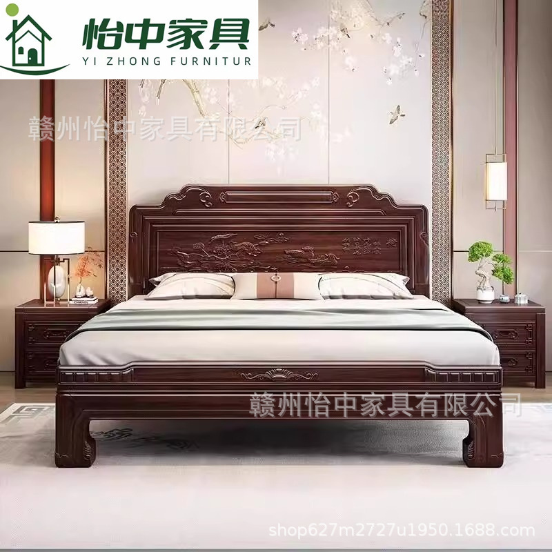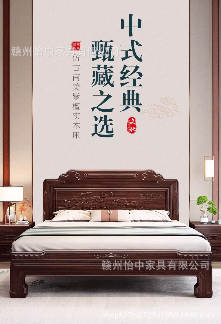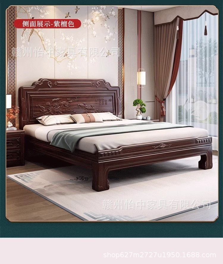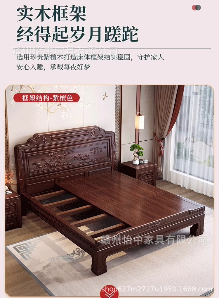 흑단 로즈우드 원목 침대 중국 고전 더블 침대 웨딩 침대 전체 원목 대형 발 현대적인 간단한 마호가니 침대스토어 가기