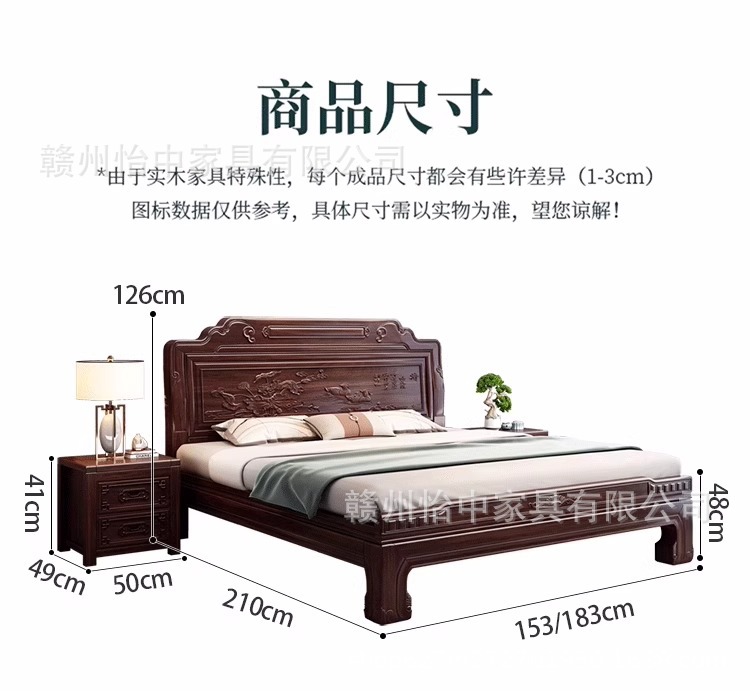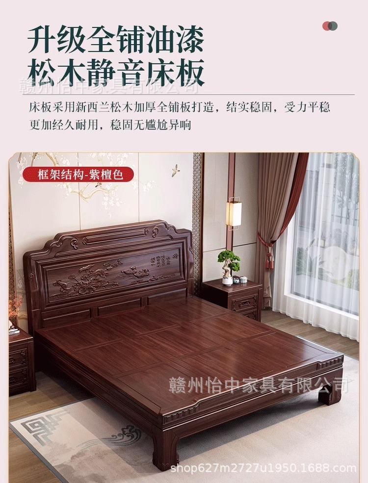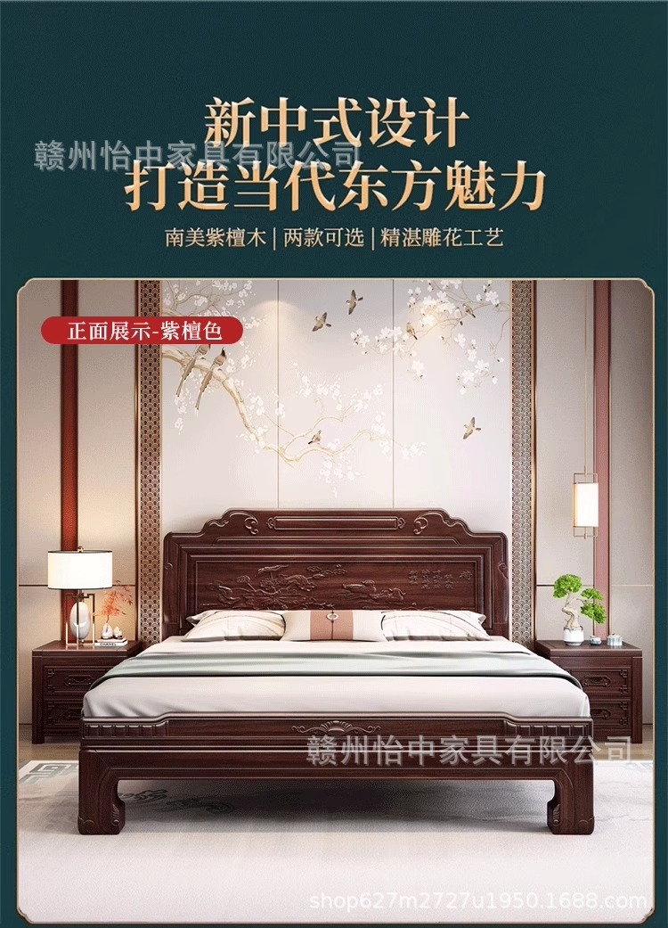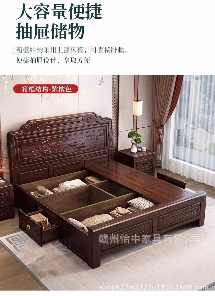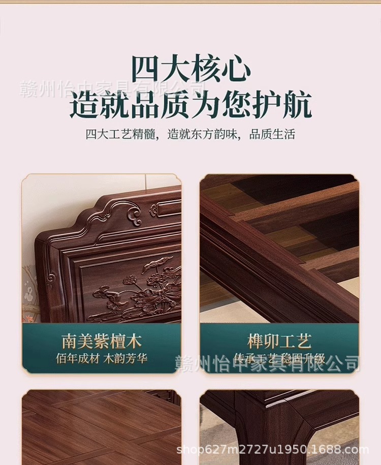 흑단 로즈우드 원목 침대 중국 고전 더블 침대 웨딩 침대 전체 원목 대형 발 현대적인 간단한 마호가니 침대스토어 가기