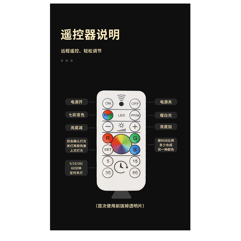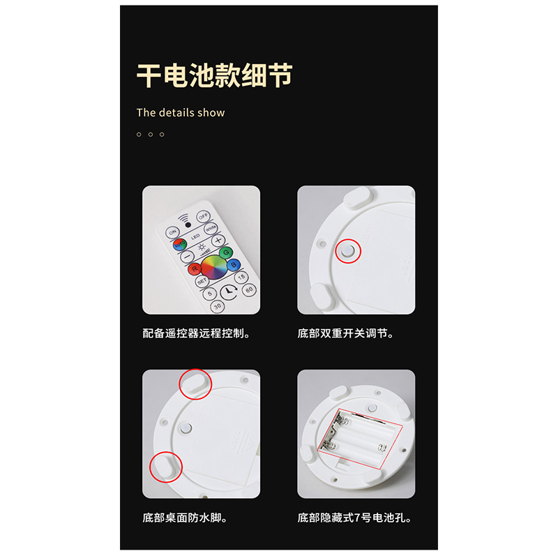 • 광원 베이스/배터리 유형/따뜻한 조명 + 컬러 조명 리모콘