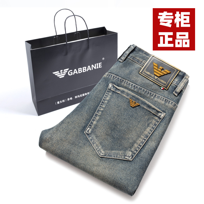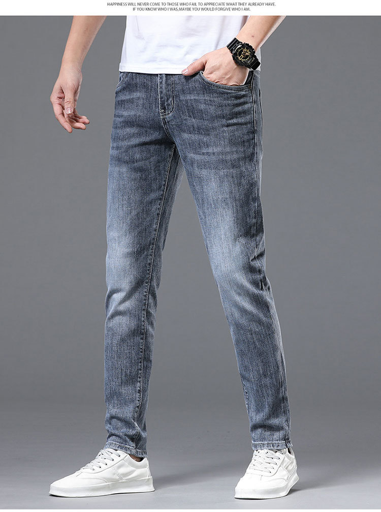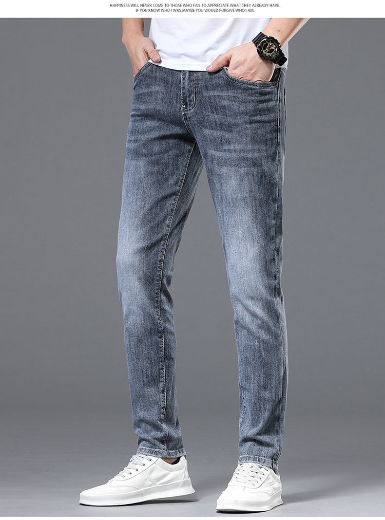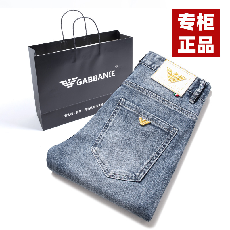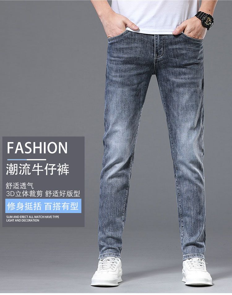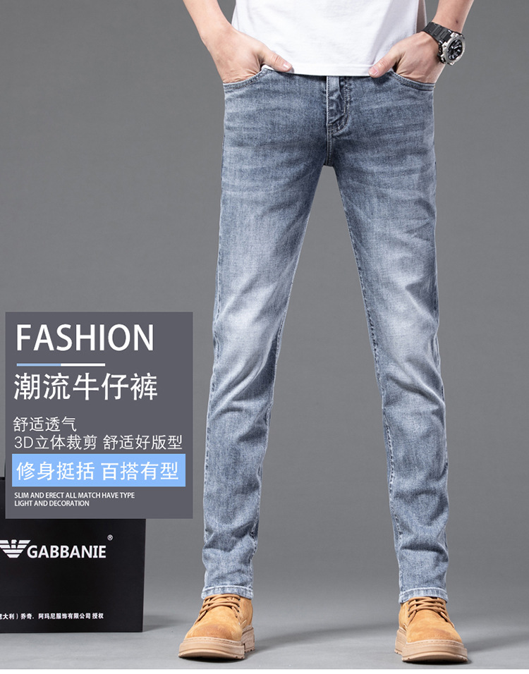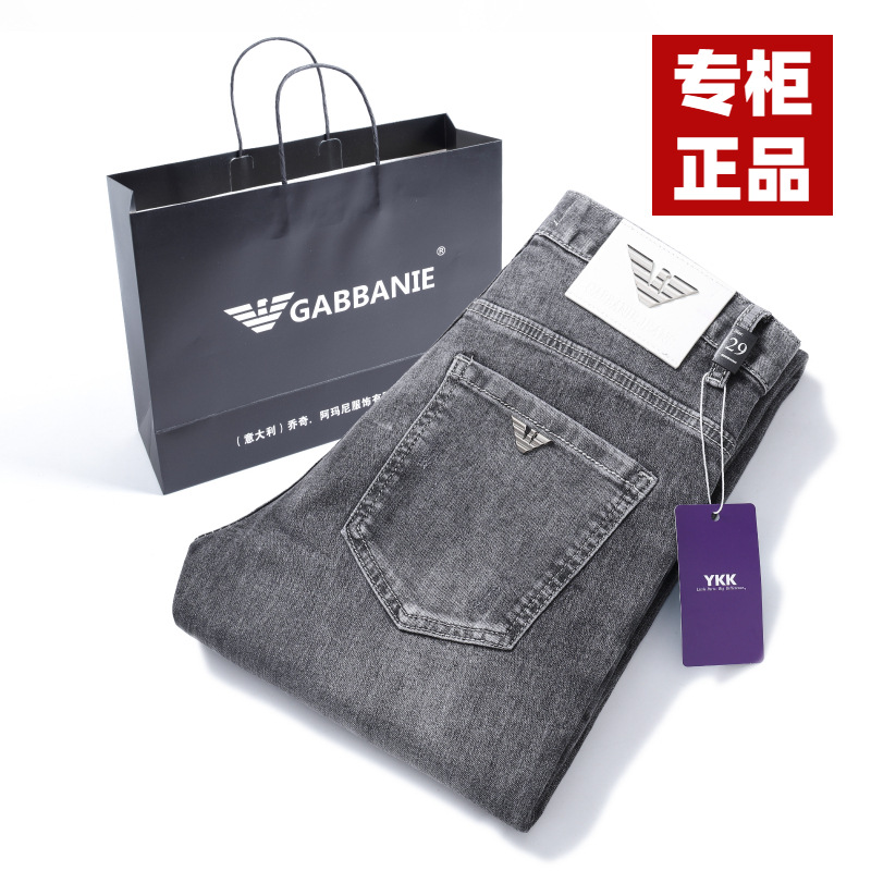 정통 Chiarmani 남성 청바지 여름 카운터 워싱 얇은 슬림핏 스몰 피트 스모크 그레이 롱 팬츠스토어 가기