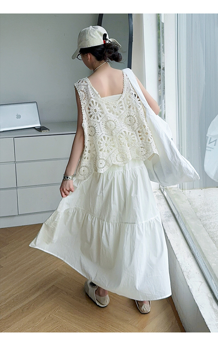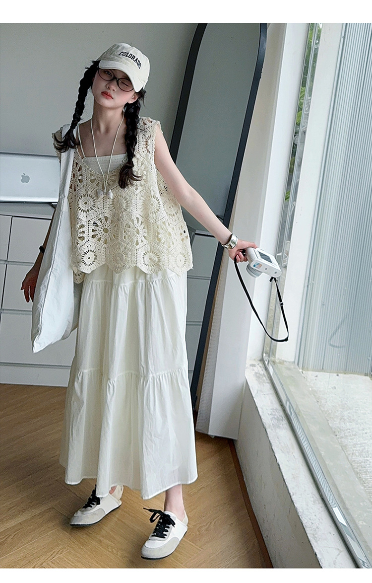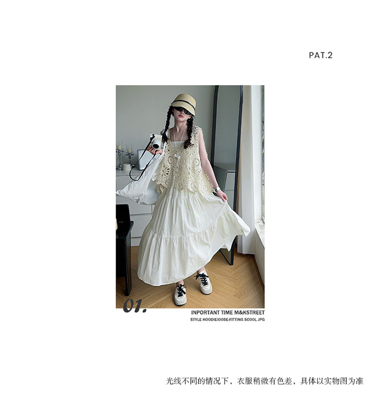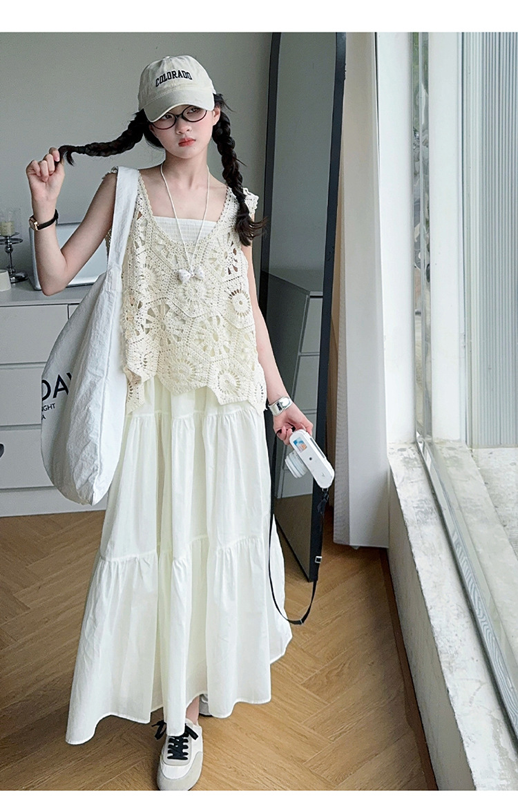 여아 민소매 드레스 2025 여름 신작 큰 어린이 유행 서스펜더 스커트 중공 조끼 스커트 투피스 세트 유행