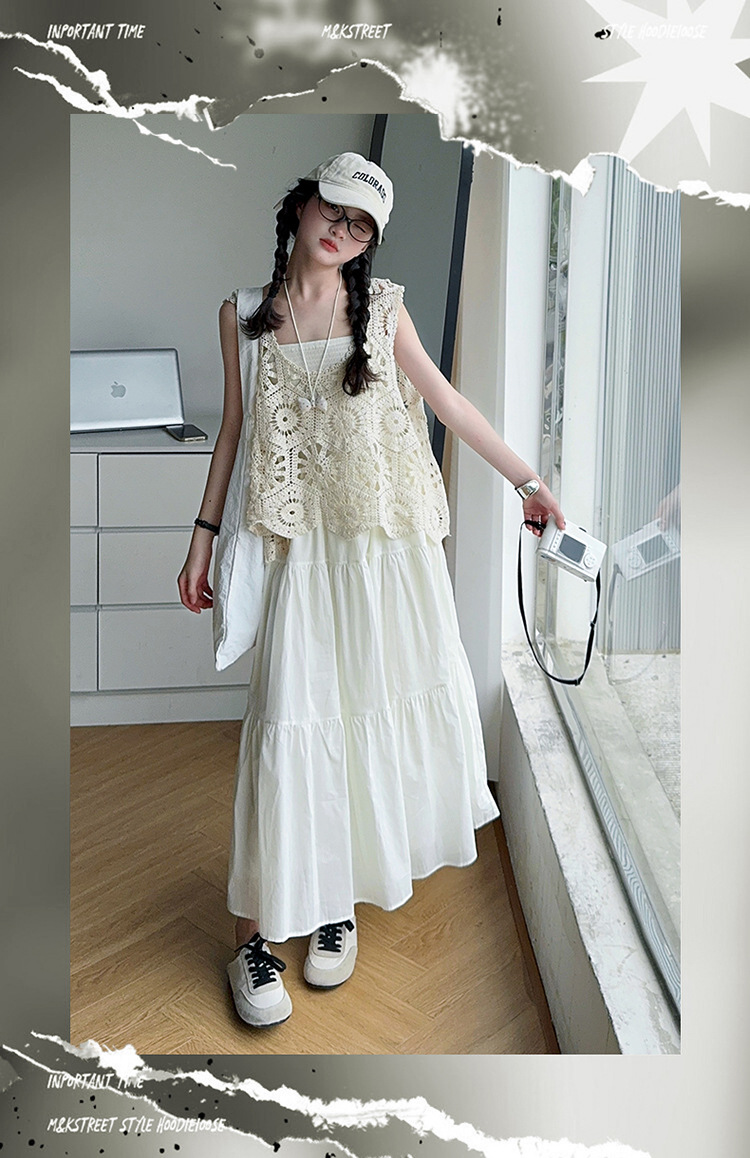 여아 민소매 드레스 2025 여름 신작 큰 어린이 유행 서스펜더 스커트 중공 조끼 스커트 투피스 세트 유행스토어 가기