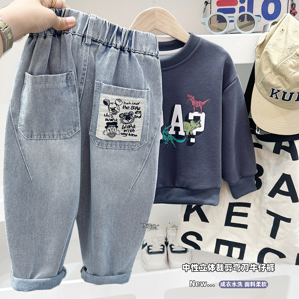 소년 청바지 봄 밝은 색 바지 2025 새로운 중대형 어린이 봄, 가을 느슨한 바지 어린이 청바지스토어 가기