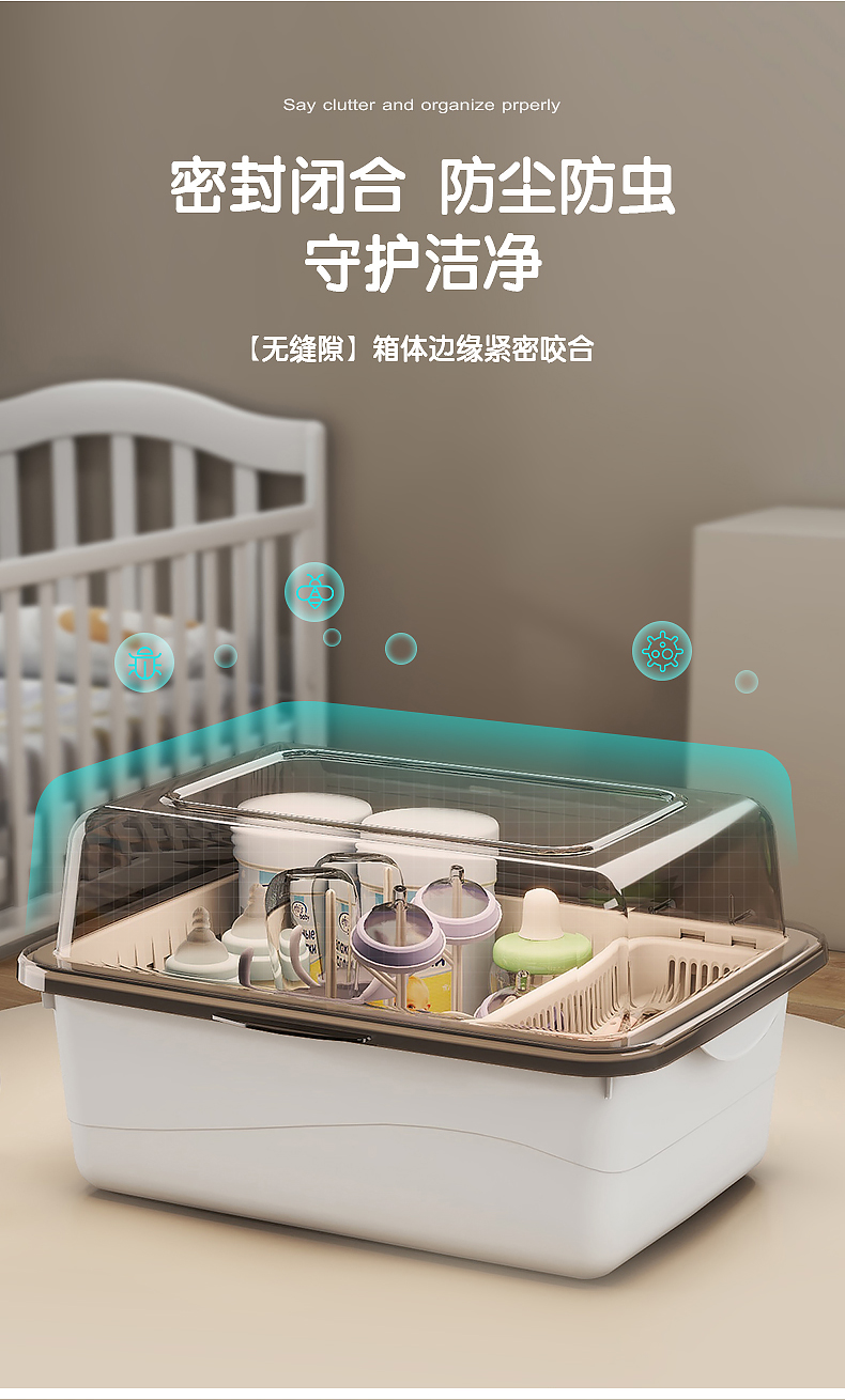뚜껑이 있는 방진병 보관함, 유아식기 배수구, 식품보조식품 분유 보관함, 유아용품 더블 레이어