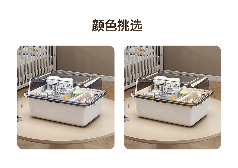 뚜껑이 있는 방진병 보관함, 유아식기 배수구, 식품보조식품 분유 보관함, 유아용품 더블 레이어스토어 가기