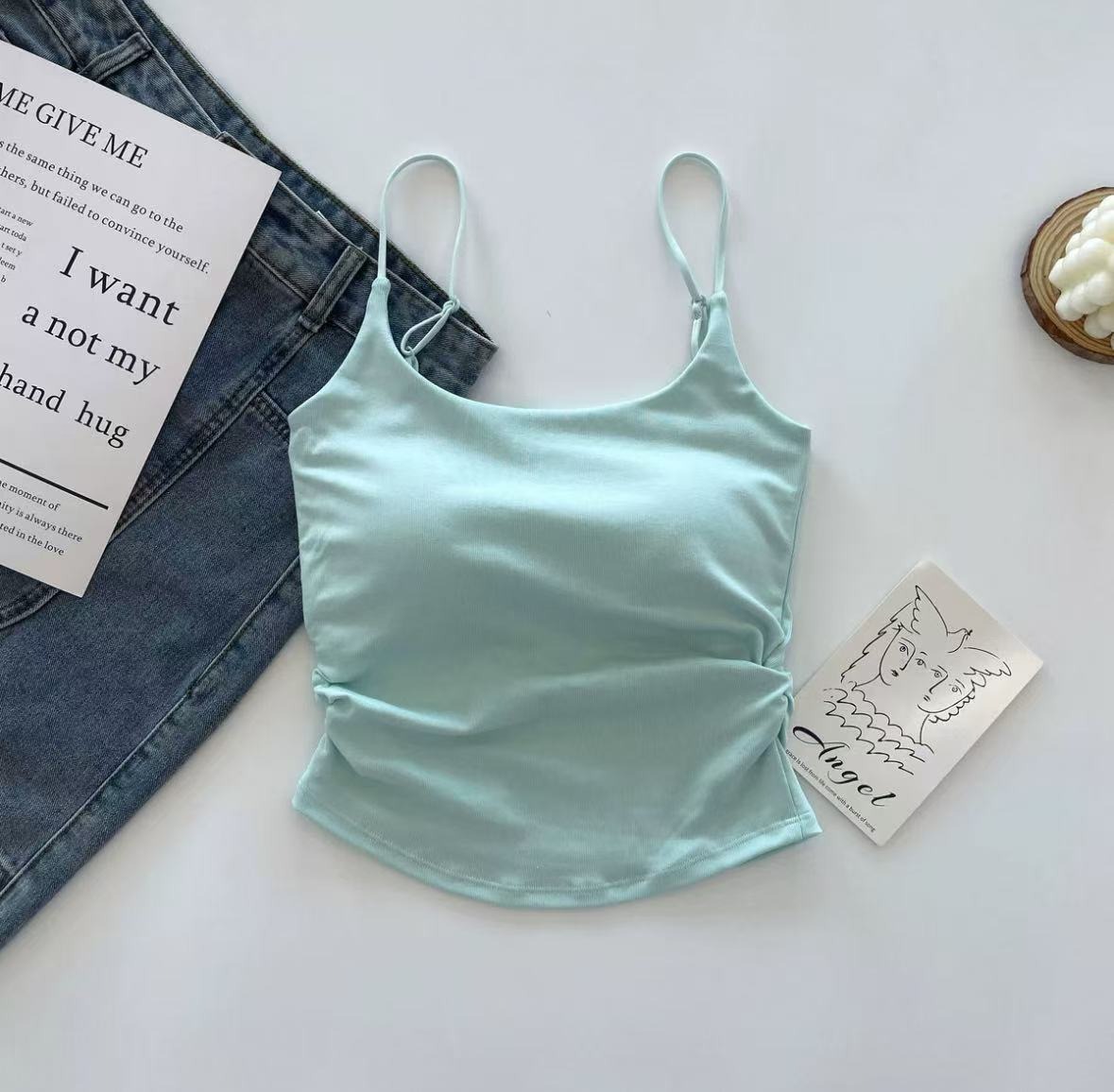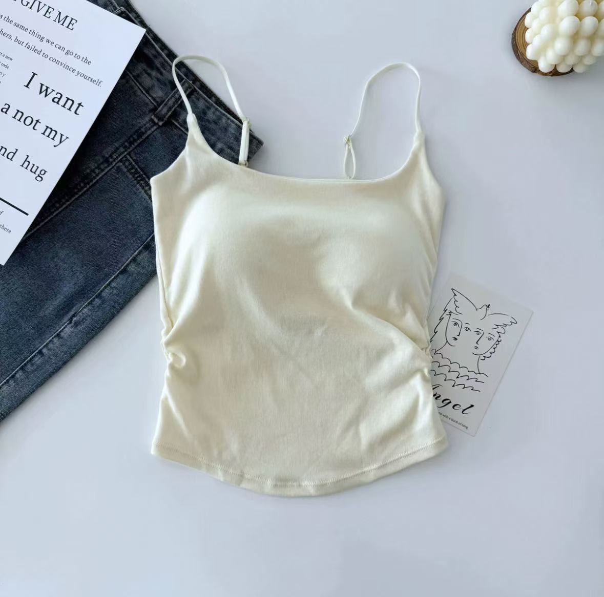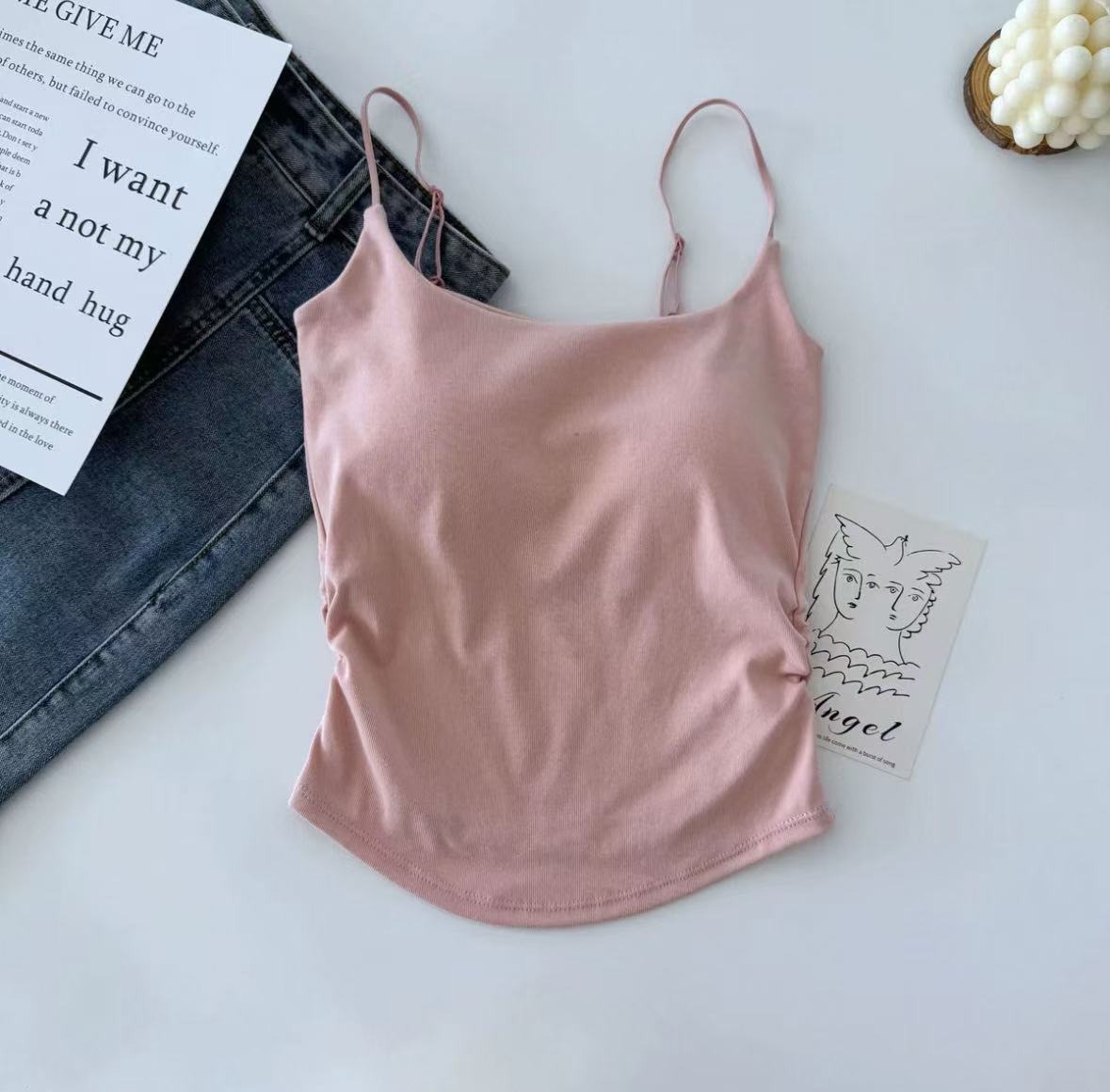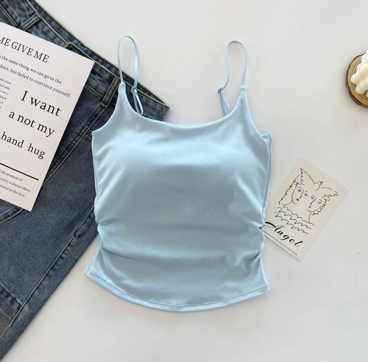여성용 캐미솔, 순수한 욕망 주름, 아름다운 등, 슬림핏 하의, 고정 컵, 가슴 감싸는 튜브탑 속옷, 여성용 상의스토어 가기