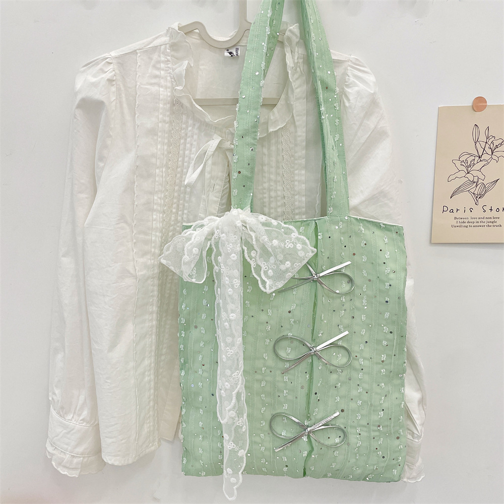 5613 2025 새로운 여름 스팽글 부드러운 활 핸드백 여성 대용량 어깨 가방 나들이 캔버스 가방