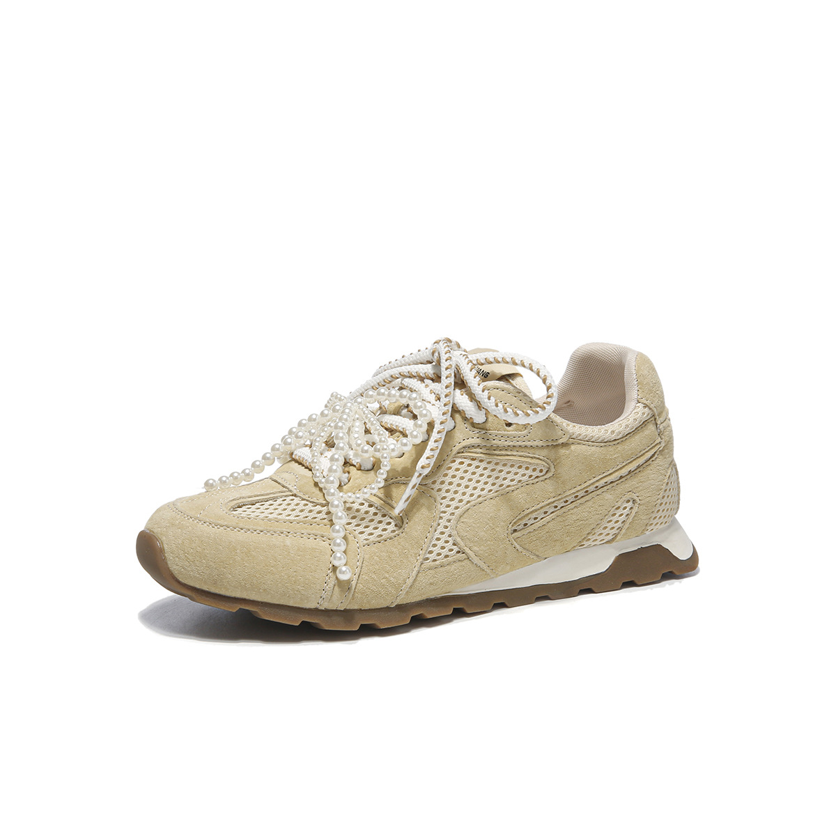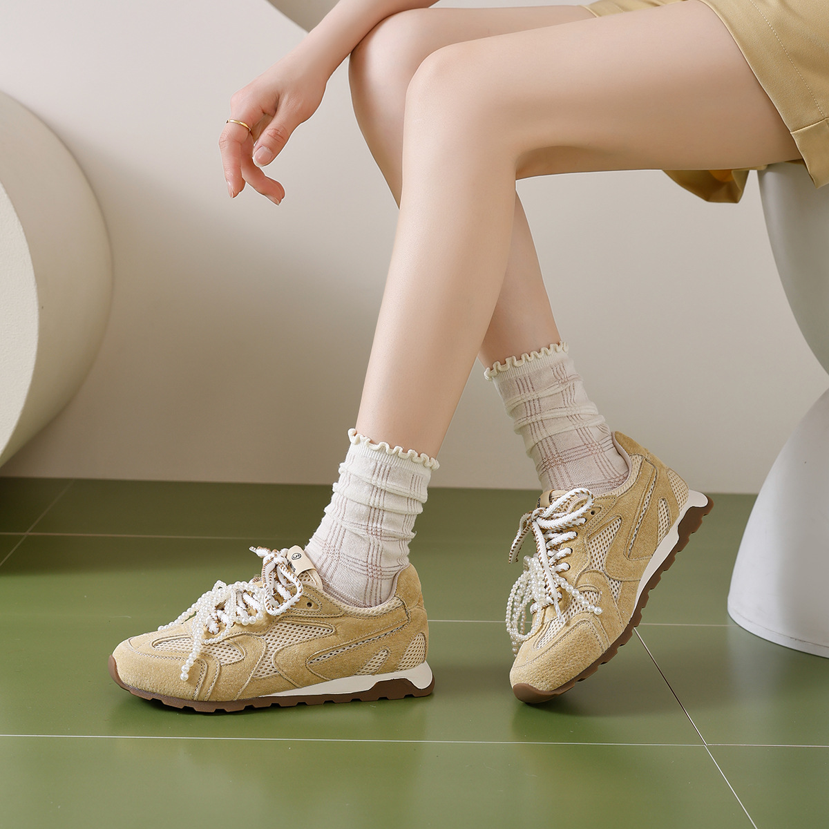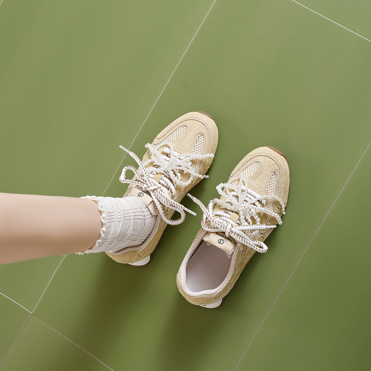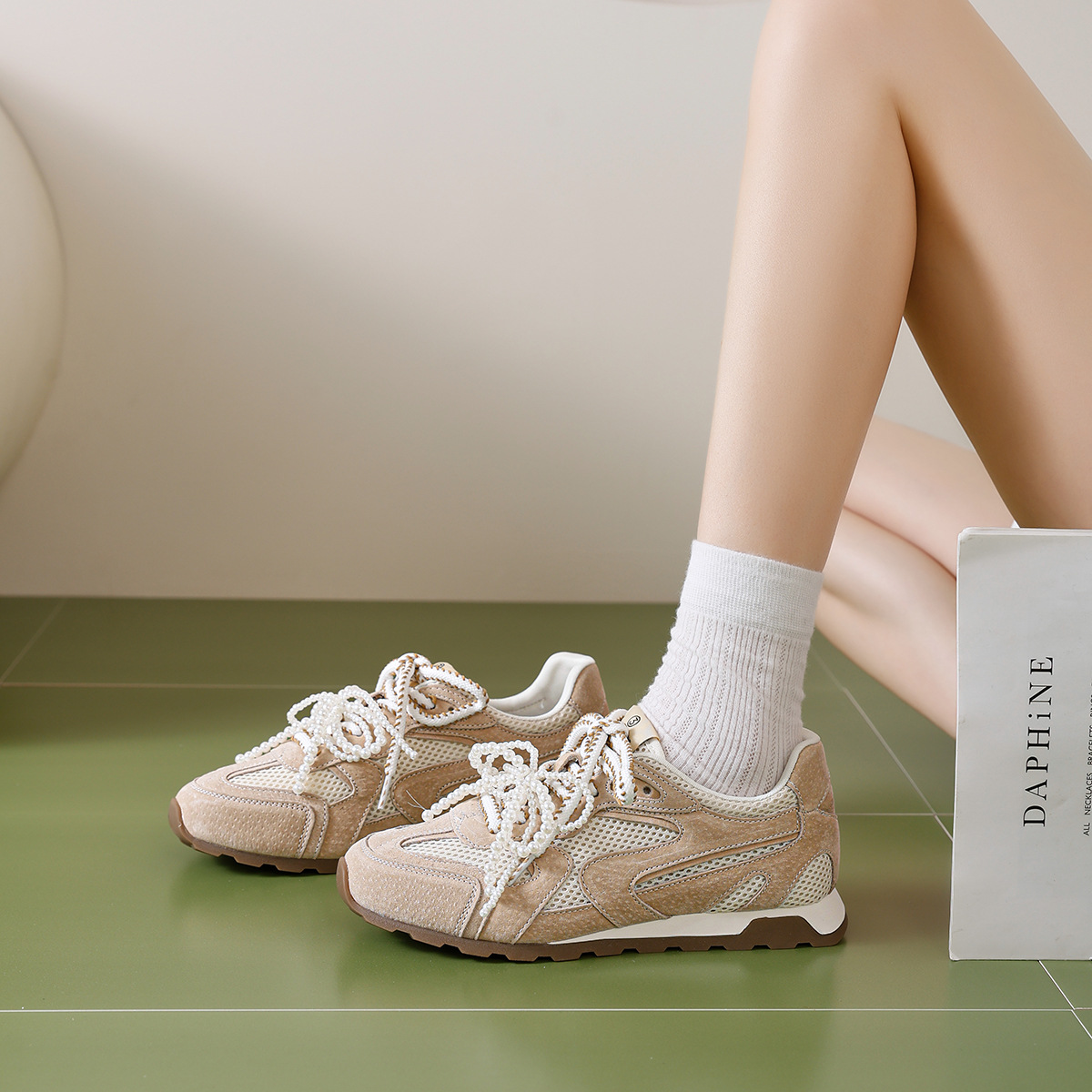 2025 여름 새로운 진주 꽃 매듭 복고풍 캐주얼 발레 스타일 운동화 포레스트 검프 신발 메쉬 통기성 육군 훈련 신발 여성을위한