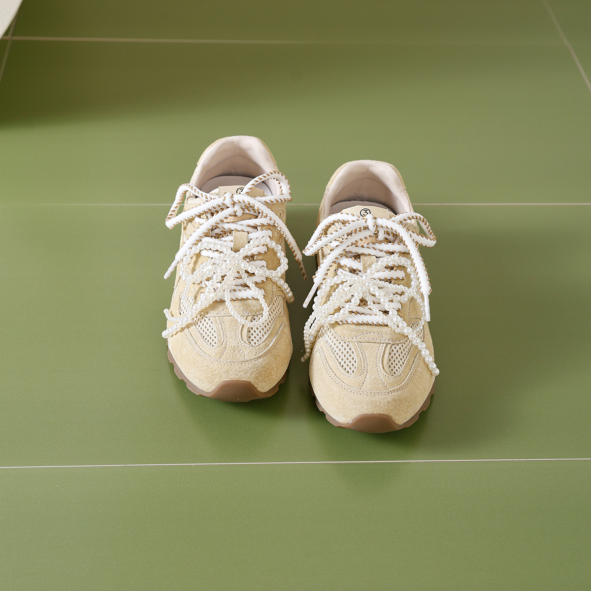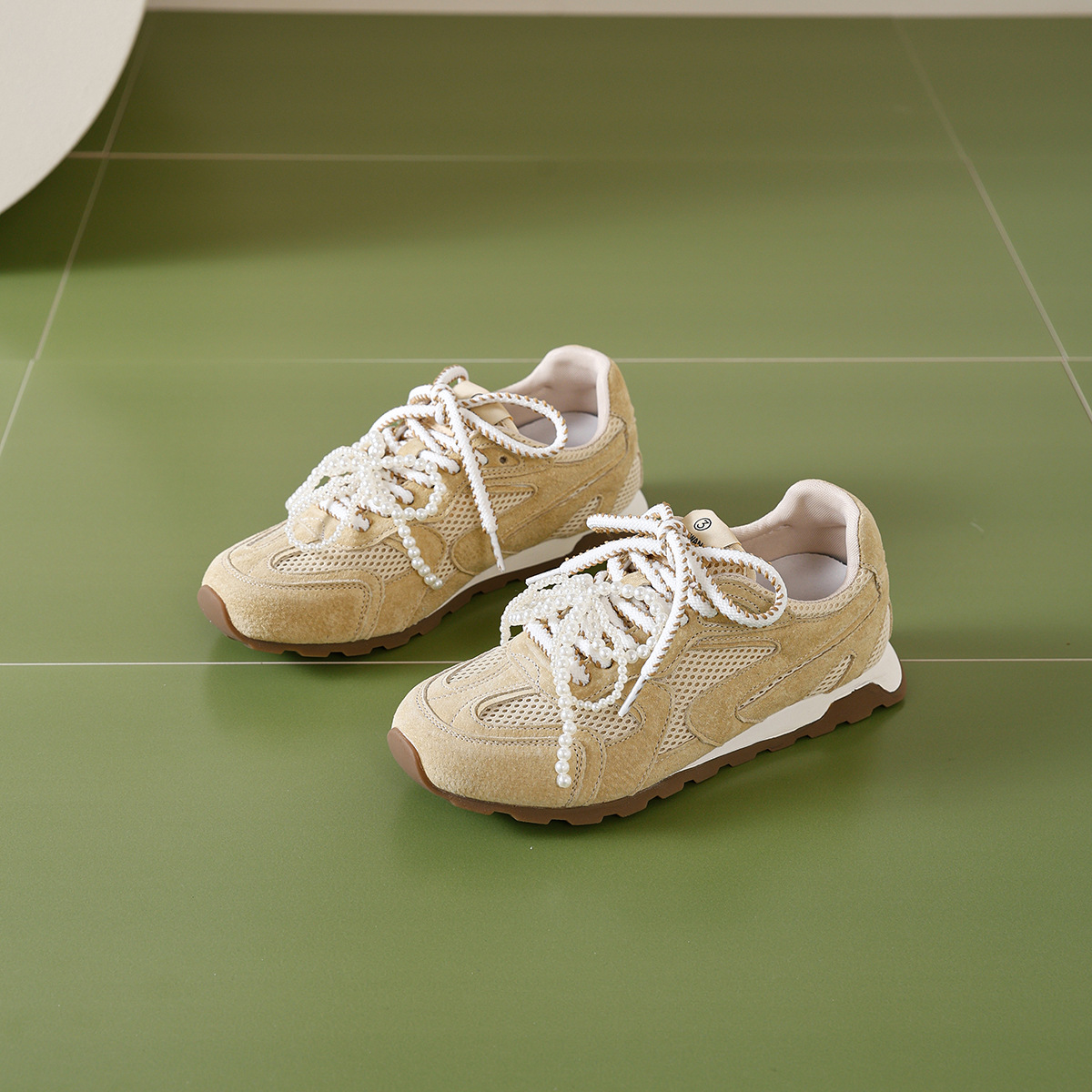 2025 여름 새로운 진주 꽃 매듭 복고풍 캐주얼 발레 스타일 운동화 포레스트 검프 신발 메쉬 통기성 육군 훈련 신발 여성을위한스토어 가기