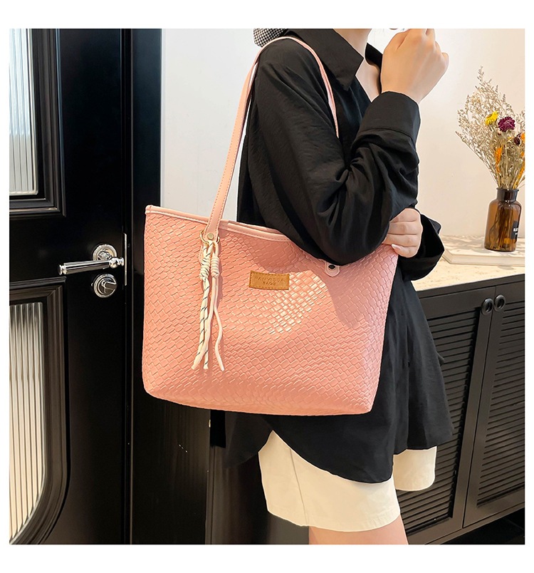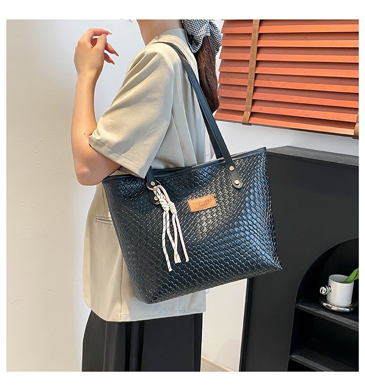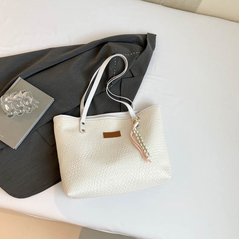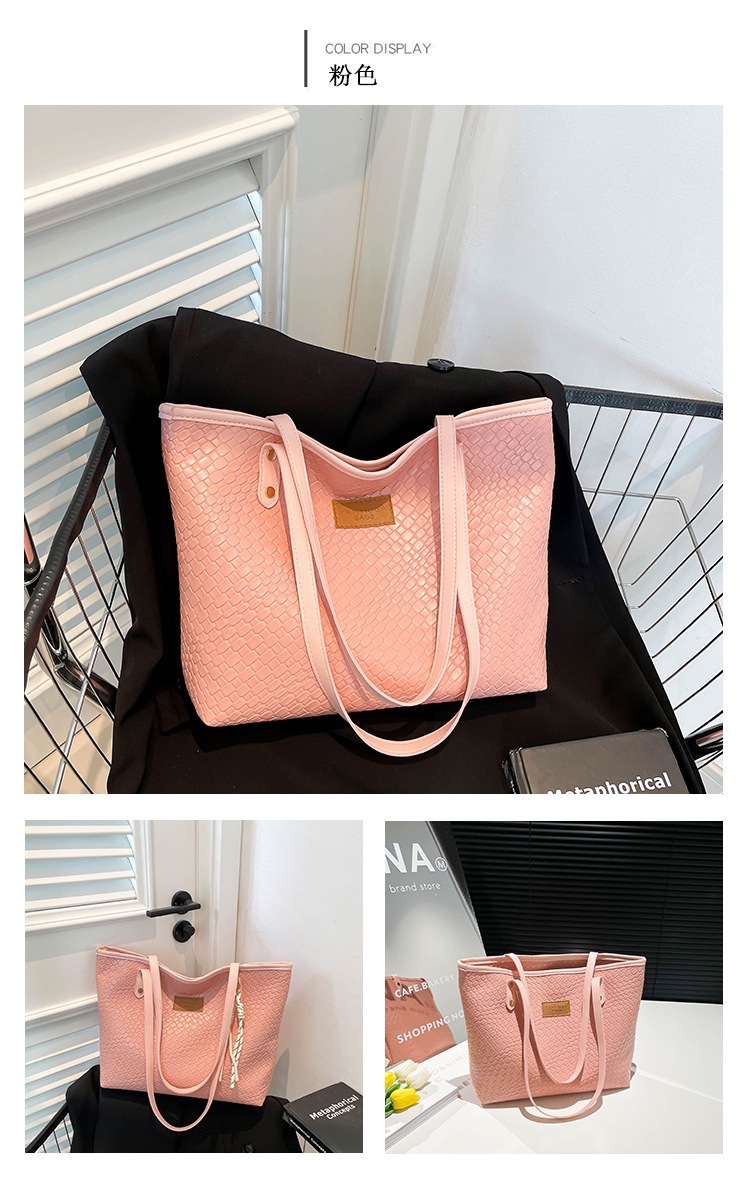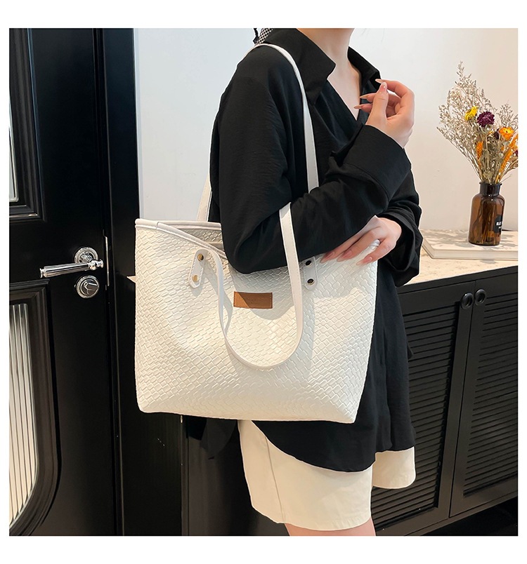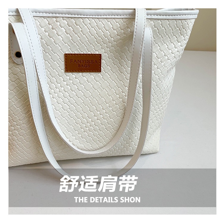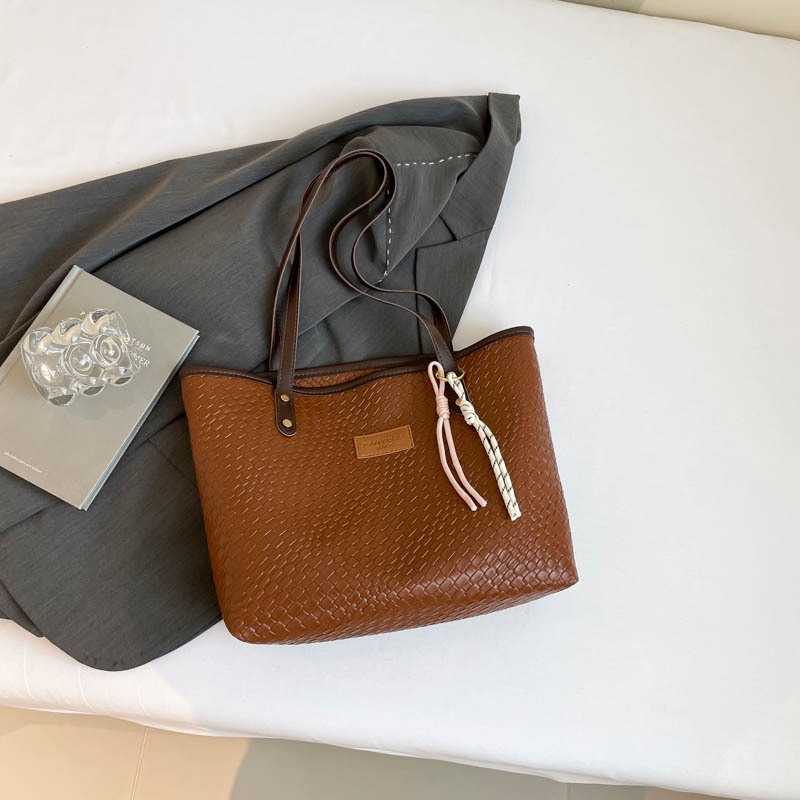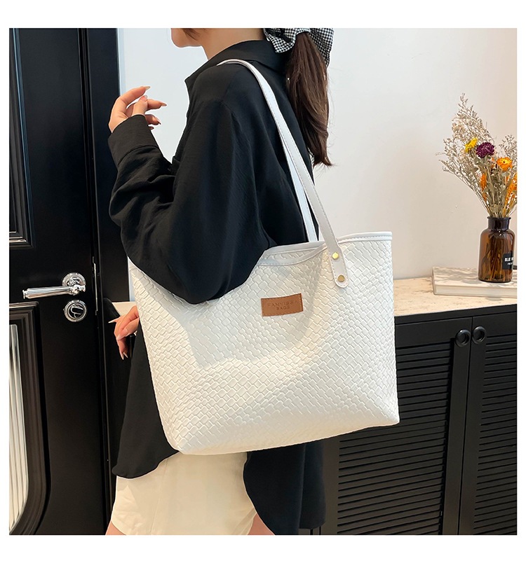 대용량 솔리드 컬러 레트로 2025 여름 새로운 스타일 짠 마름모 패턴 통근 기질 캐주얼 겨드랑이 숄더백 여성용