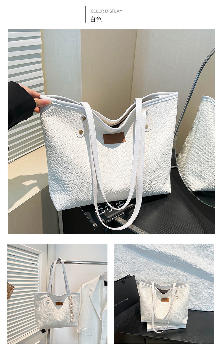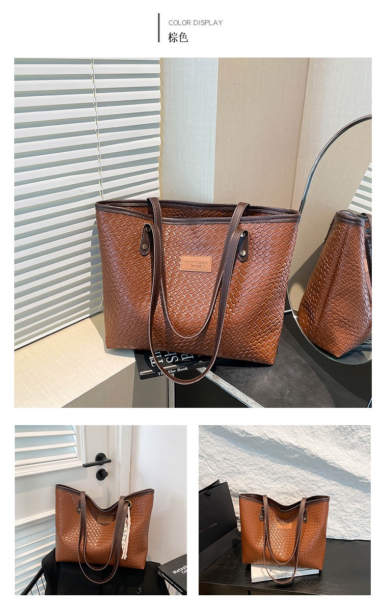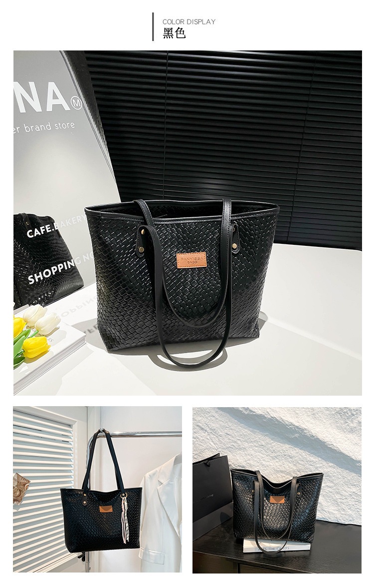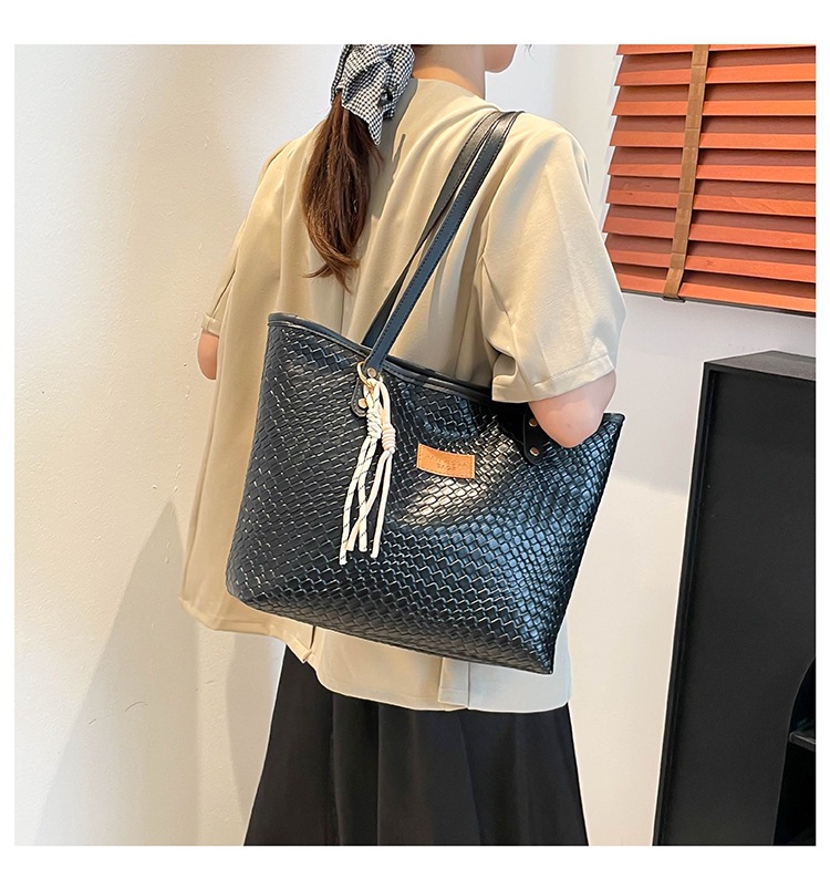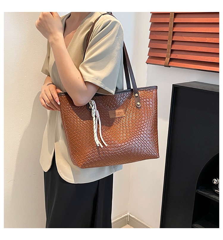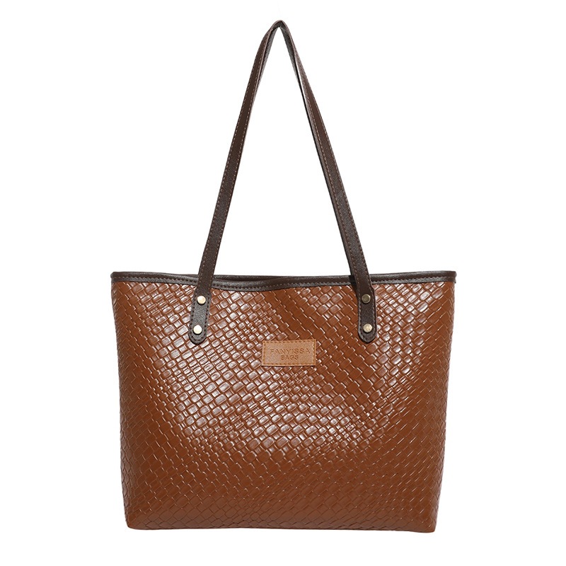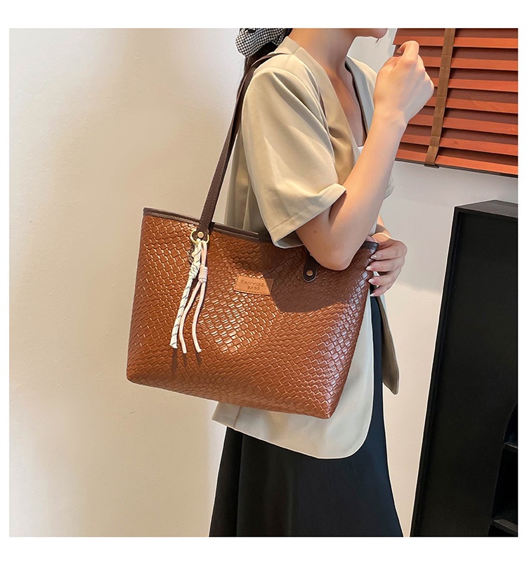 대용량 솔리드 컬러 레트로 2025 여름 새로운 스타일 짠 마름모 패턴 통근 기질 캐주얼 겨드랑이 숄더백 여성용
