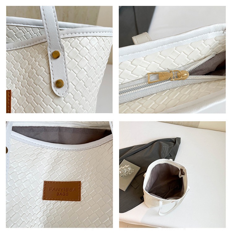 대용량 솔리드 컬러 레트로 2025 여름 새로운 스타일 짠 마름모 패턴 통근 기질 캐주얼 겨드랑이 숄더백 여성용스토어 가기