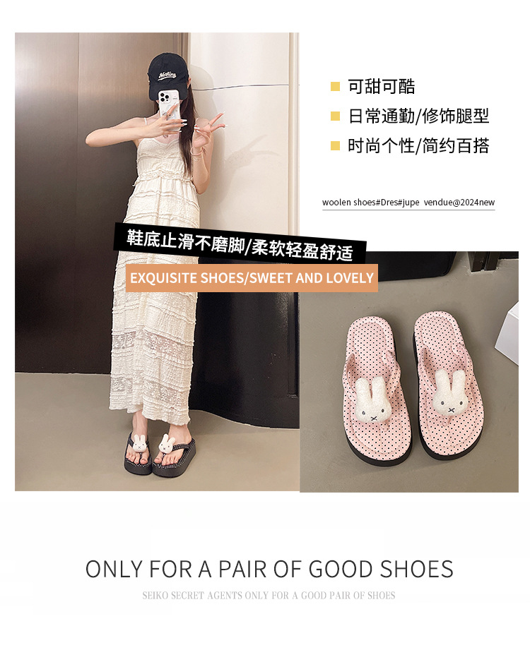 여름 여성용 만화 슬리퍼, 인터넷 연예인 단색, 편안한 두꺼운 밑창, 플랫 힐, 방수, 미끄럼 방지, 다용도 사진 촬영, 매우 귀여운