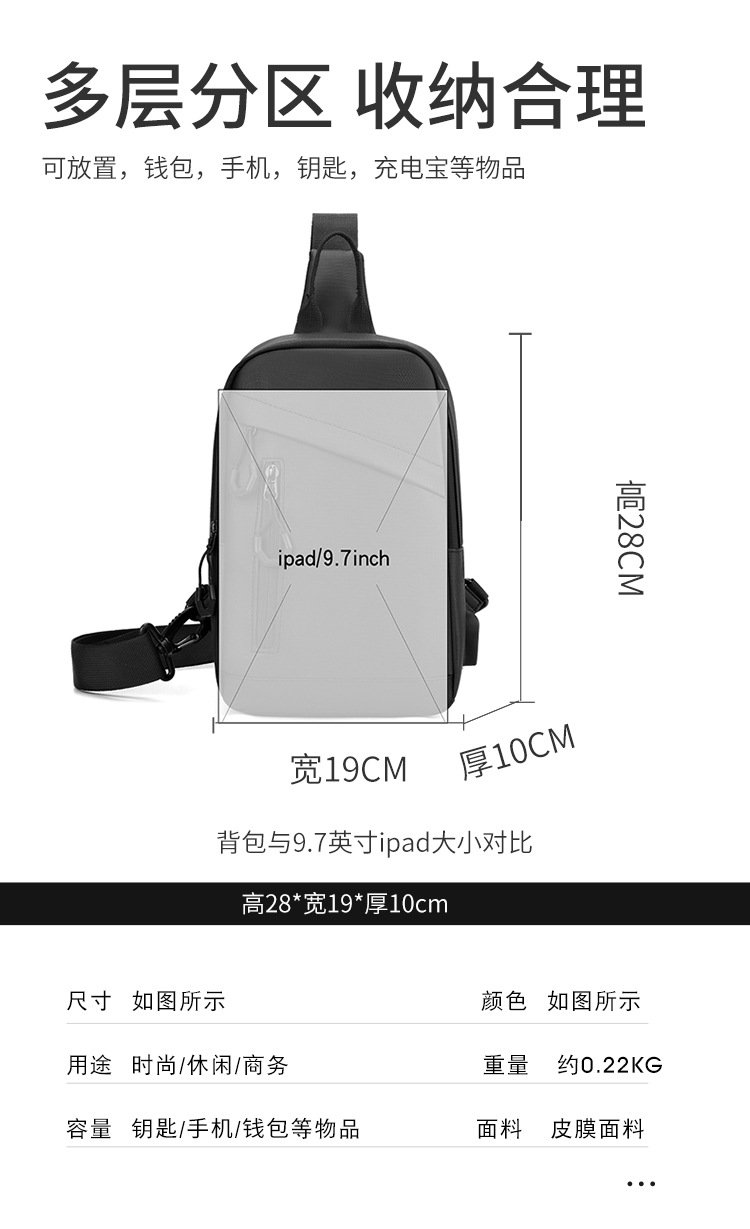 새로운 스타일의 크로스백, 남성용 체스트백, 가죽필름, 트렌디한 남성용 체스트백, 캐주얼한 행잉백, 패셔너블한 남성용 가방, 다용도 경량 숄더백