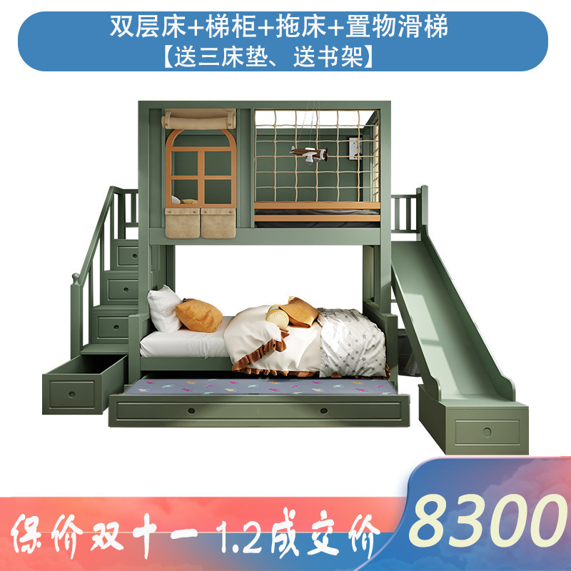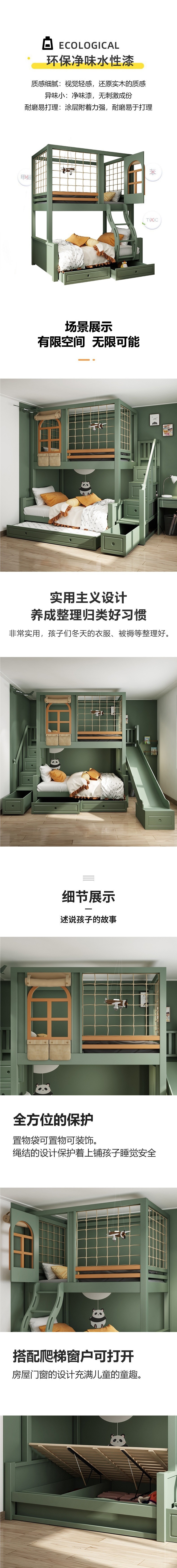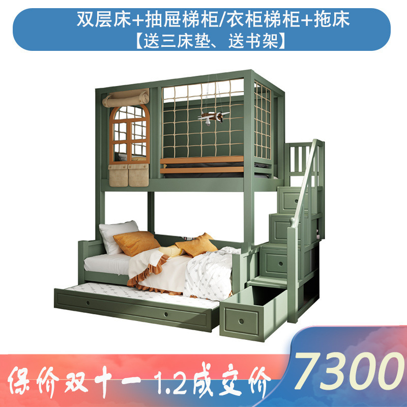 • 이층 침대 + 사다리 캐비닛 + 드래그 침대 + 수납 슬라이드