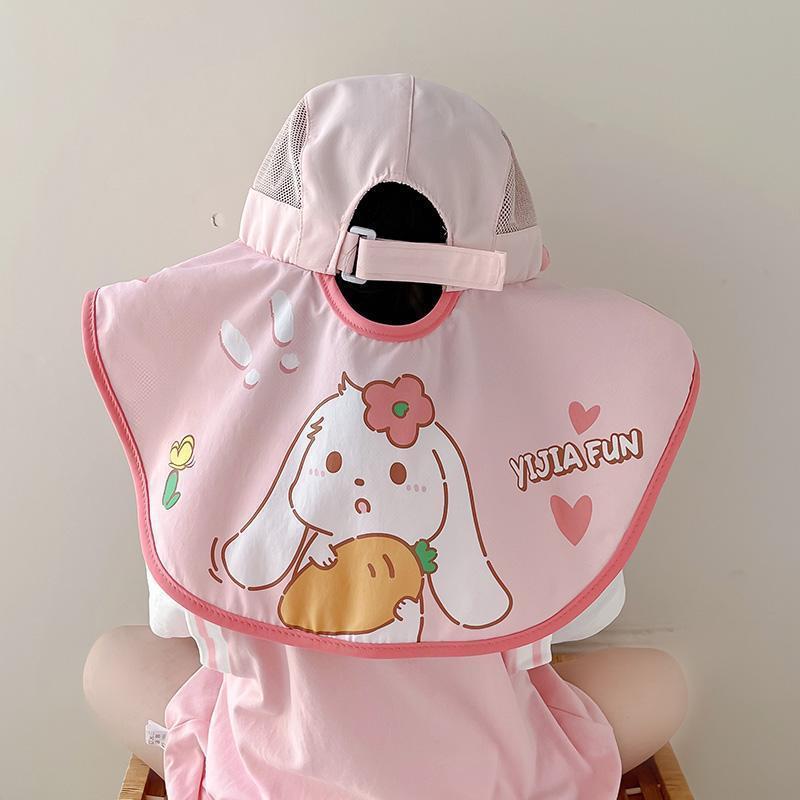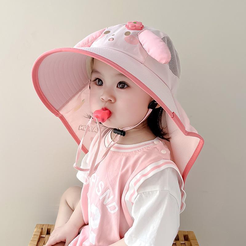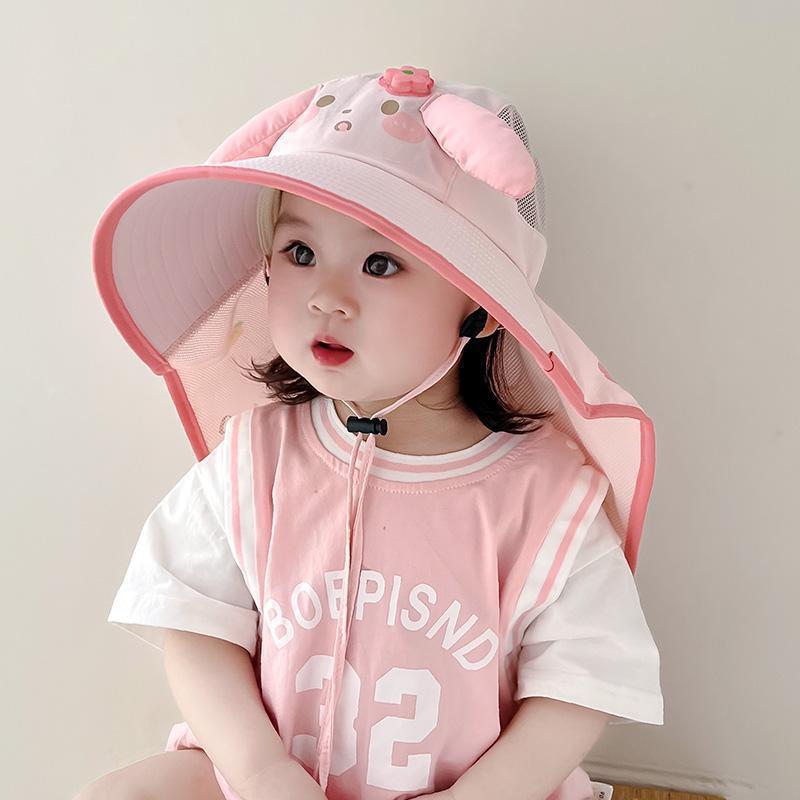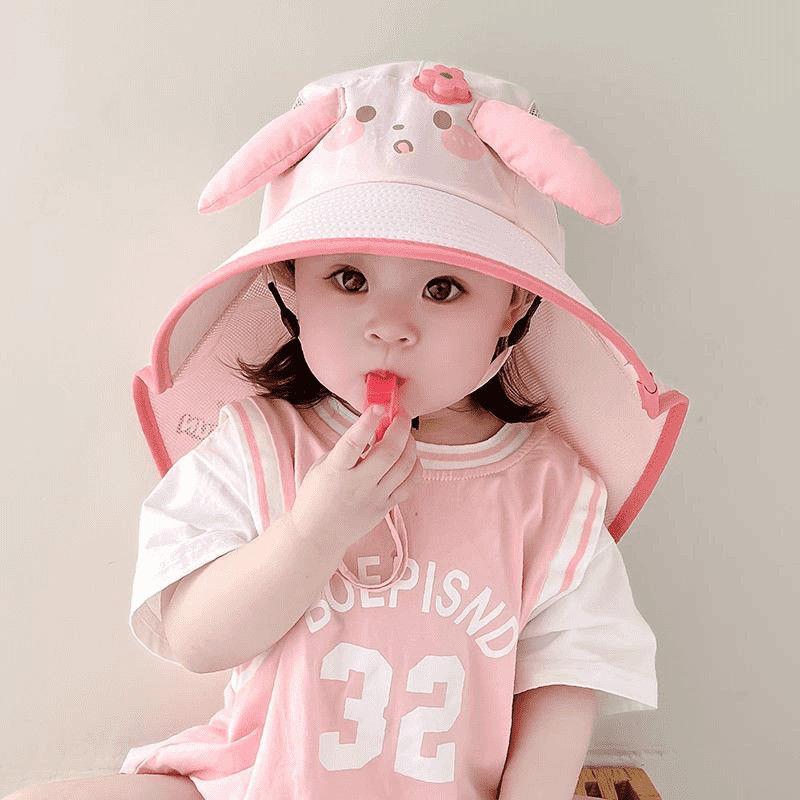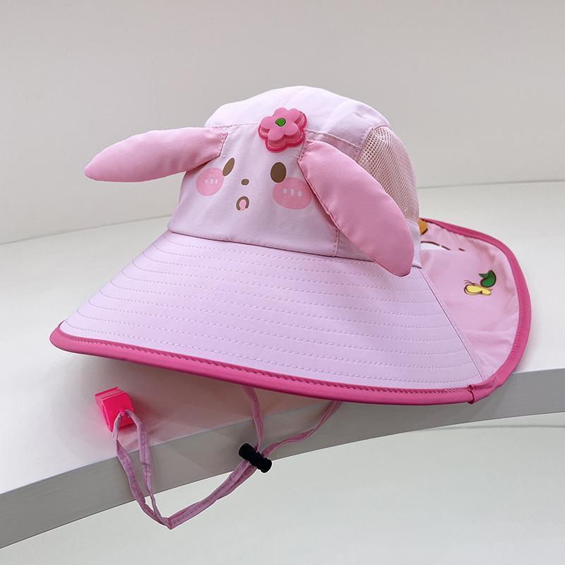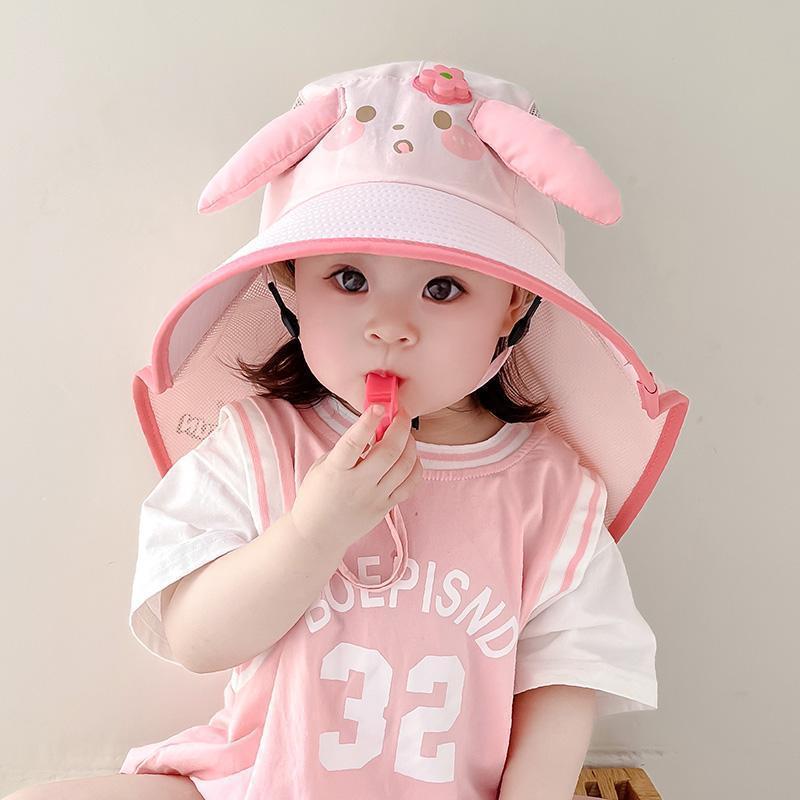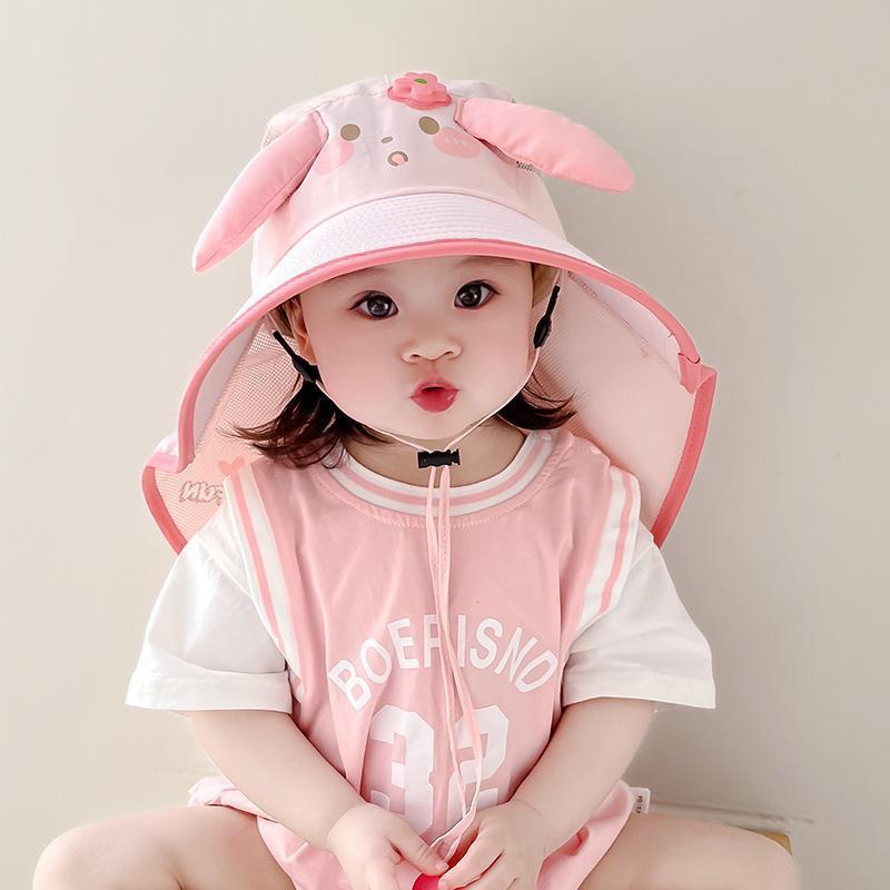 어린이용 자외선 차단 모자, 여름용 챙이 큰 여아용 어부 모자, 숄, 아기용 태양 모자, 귀여운 토끼 귀 태양 모자