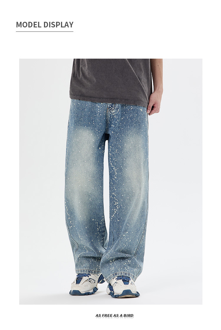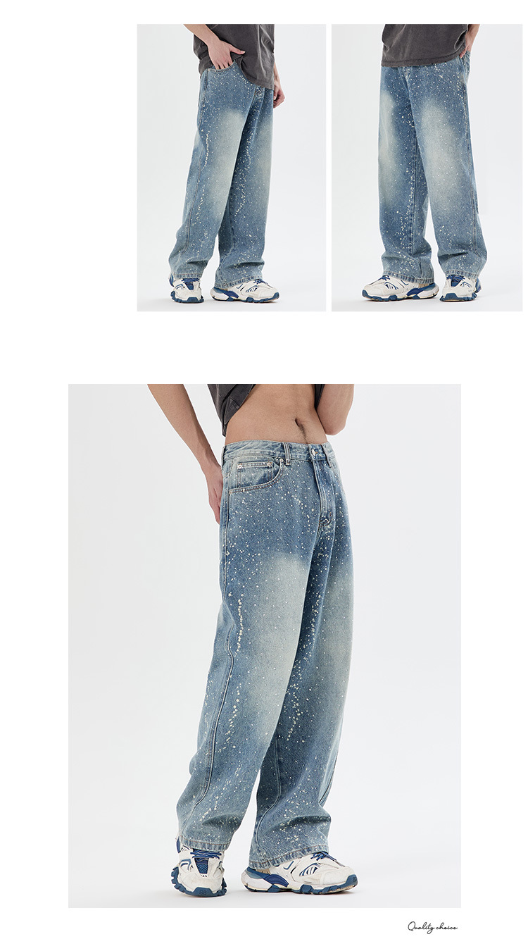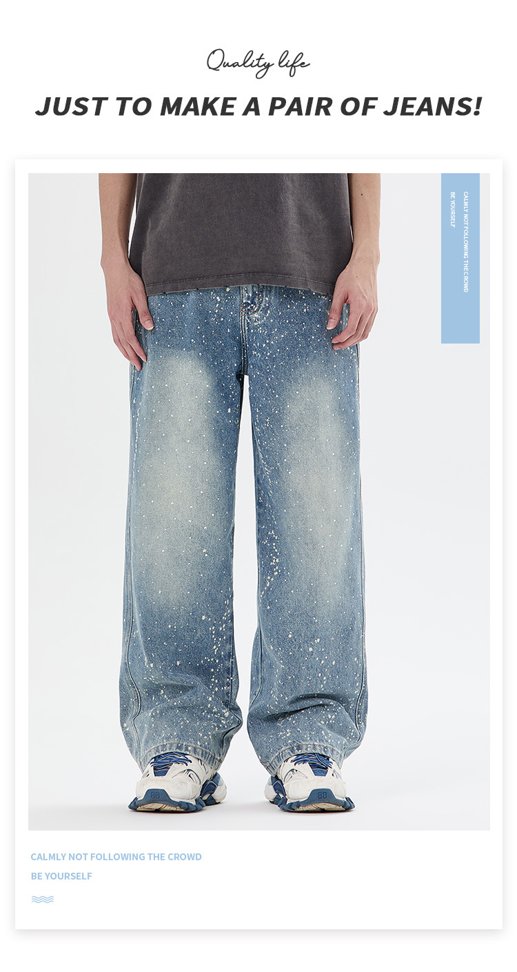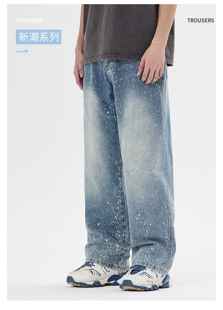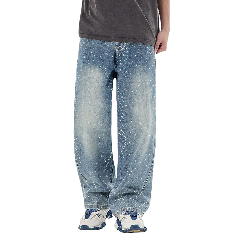 아메리칸 하이 스트리트 패션 브랜드, 핸섬 니치 디자인, 스프레이 페인트 핫 다이아몬드 청바지, 고급 남성 루즈 와이드 레그 스트레이트 팬츠스토어 가기