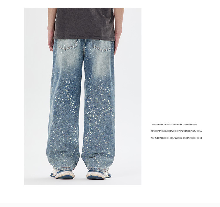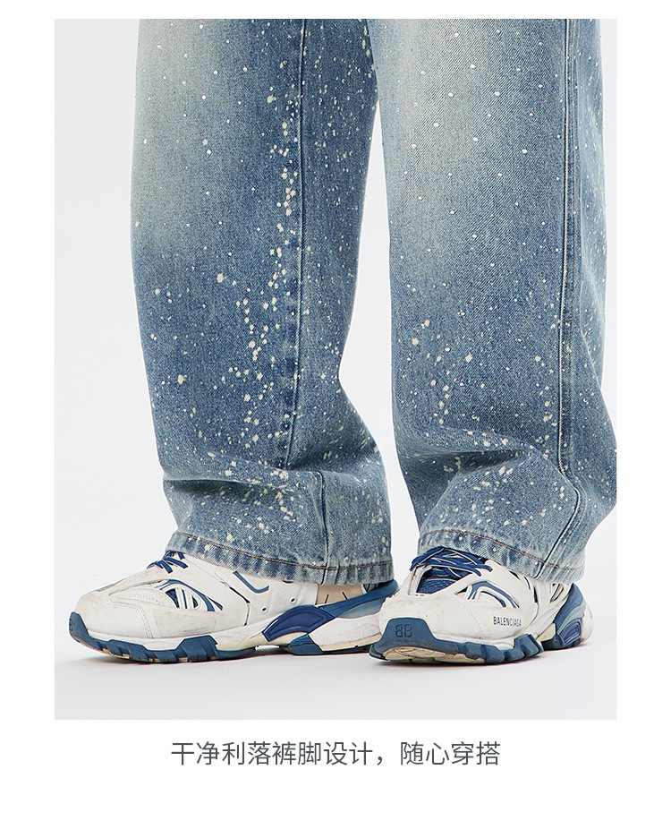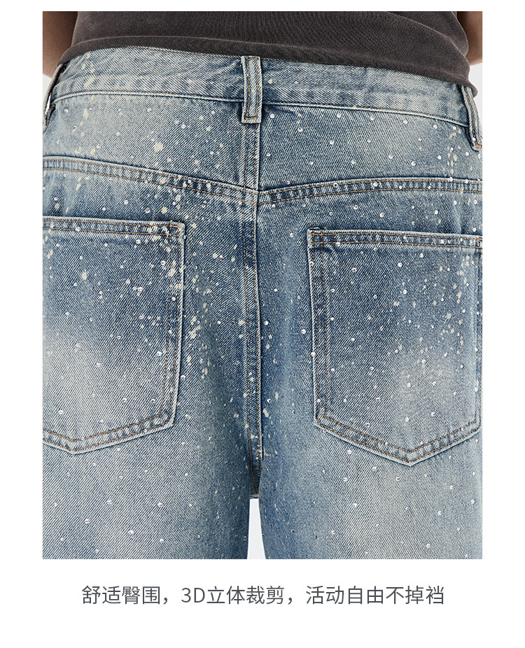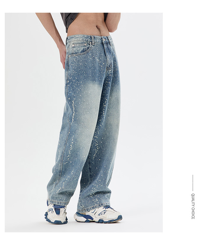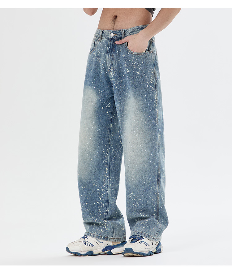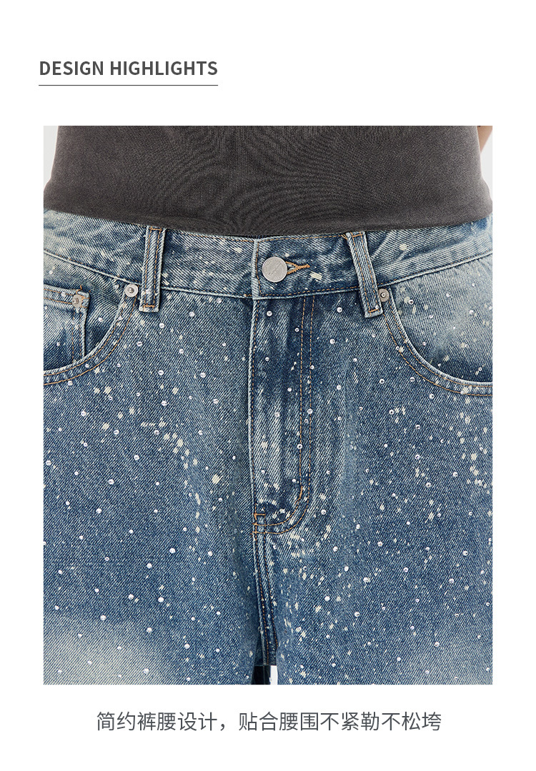 아메리칸 하이 스트리트 패션 브랜드, 핸섬 니치 디자인, 스프레이 페인트 핫 다이아몬드 청바지, 고급 남성 루즈 와이드 레그 스트레이트 팬츠스토어 가기