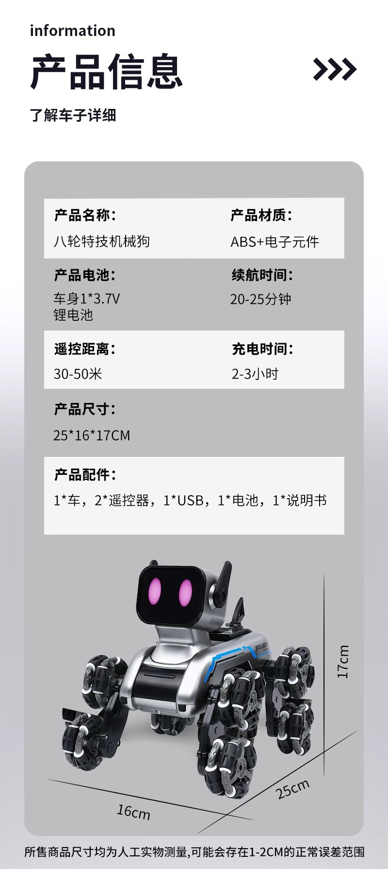 • 8륜 스턴트 로봇견 [이중 제어]·영어 포장