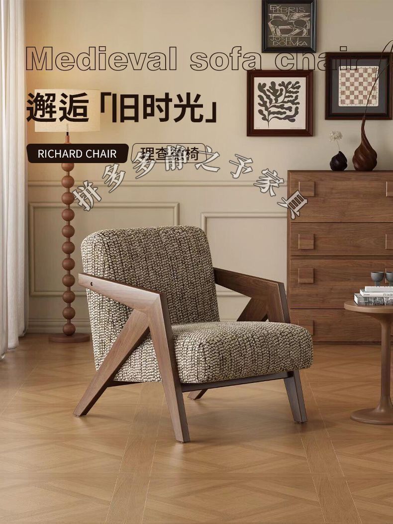 Richard 싱글 소파 의자 프랑스 중고 거실 발코니 레저 의자 단단한 나무 디자이너 게으른 소파 의자스토어 가기