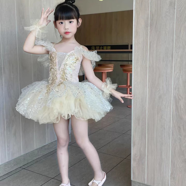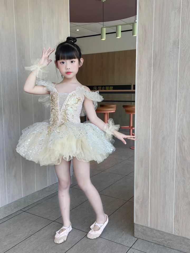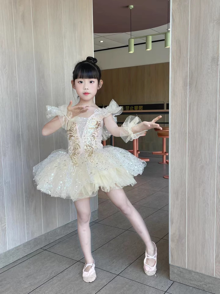 새로운 어린이 발레 어린이 날 댄스 공연 의상 소녀 공주 드레스 설날 유치원 공연 의상 퍼프 거즈 스커트