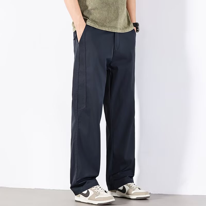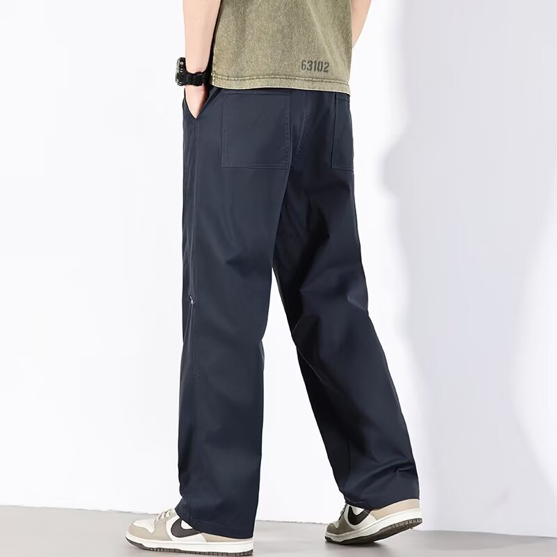 플러스 사이즈 아메리칸 스타일 속건성 스트레이트 캐주얼 바지 남성 봄 여름 신작 스플라이스 3방수 충전 바지 루즈한 와이드 팬츠