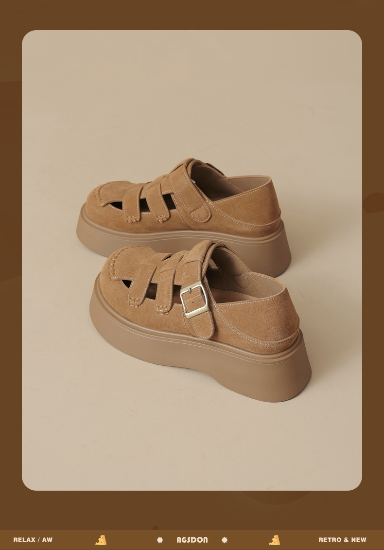 여성용 Augushiden 로마 샌들 2025 신상 여름 아우터 Baotou 두꺼운 밑창 Birkenstock 땋은 돼지 케이지 샌들스토어 가기